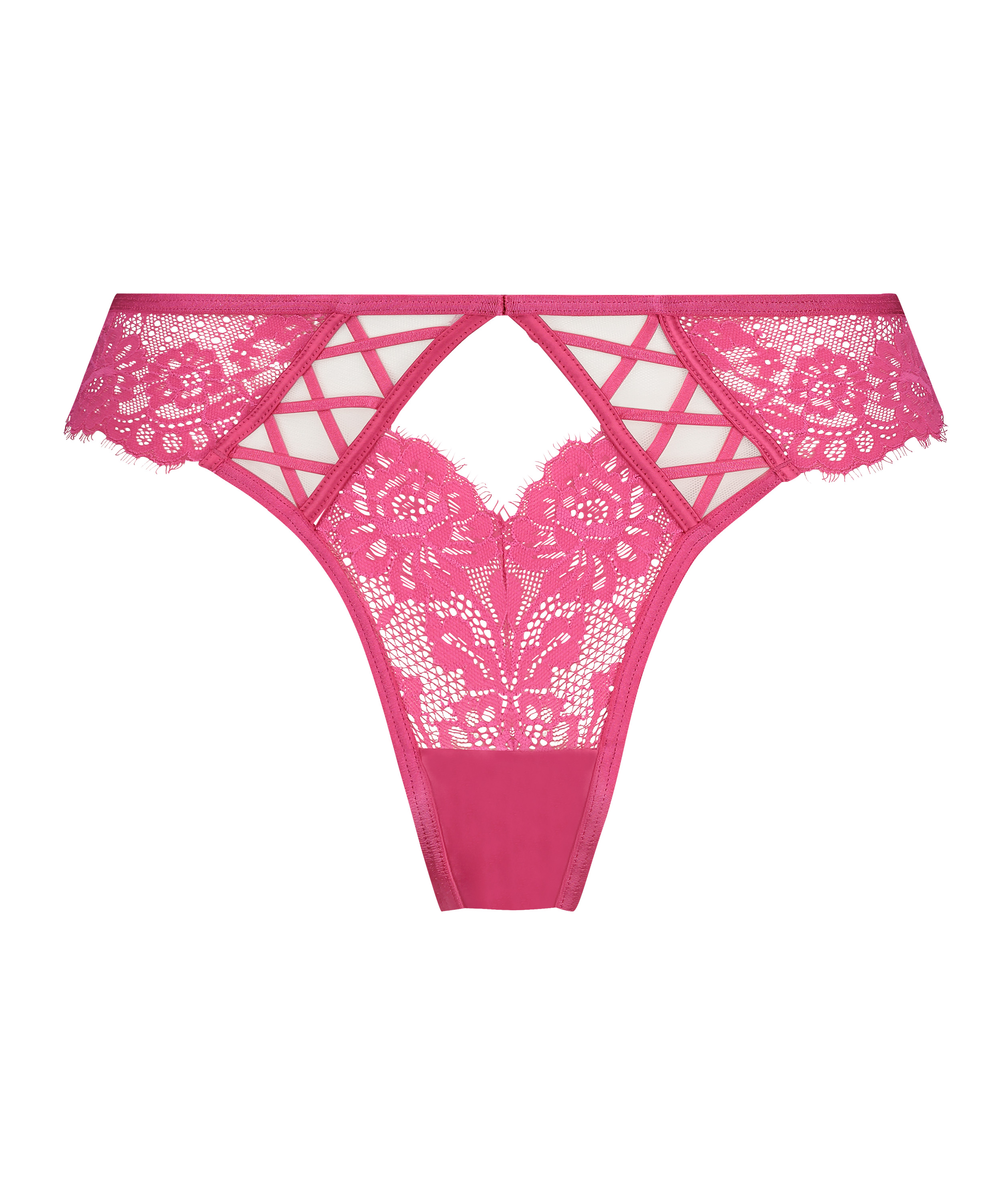 This sexy thong features semi-transparent lace and strappy details. From our sexy Private collection.