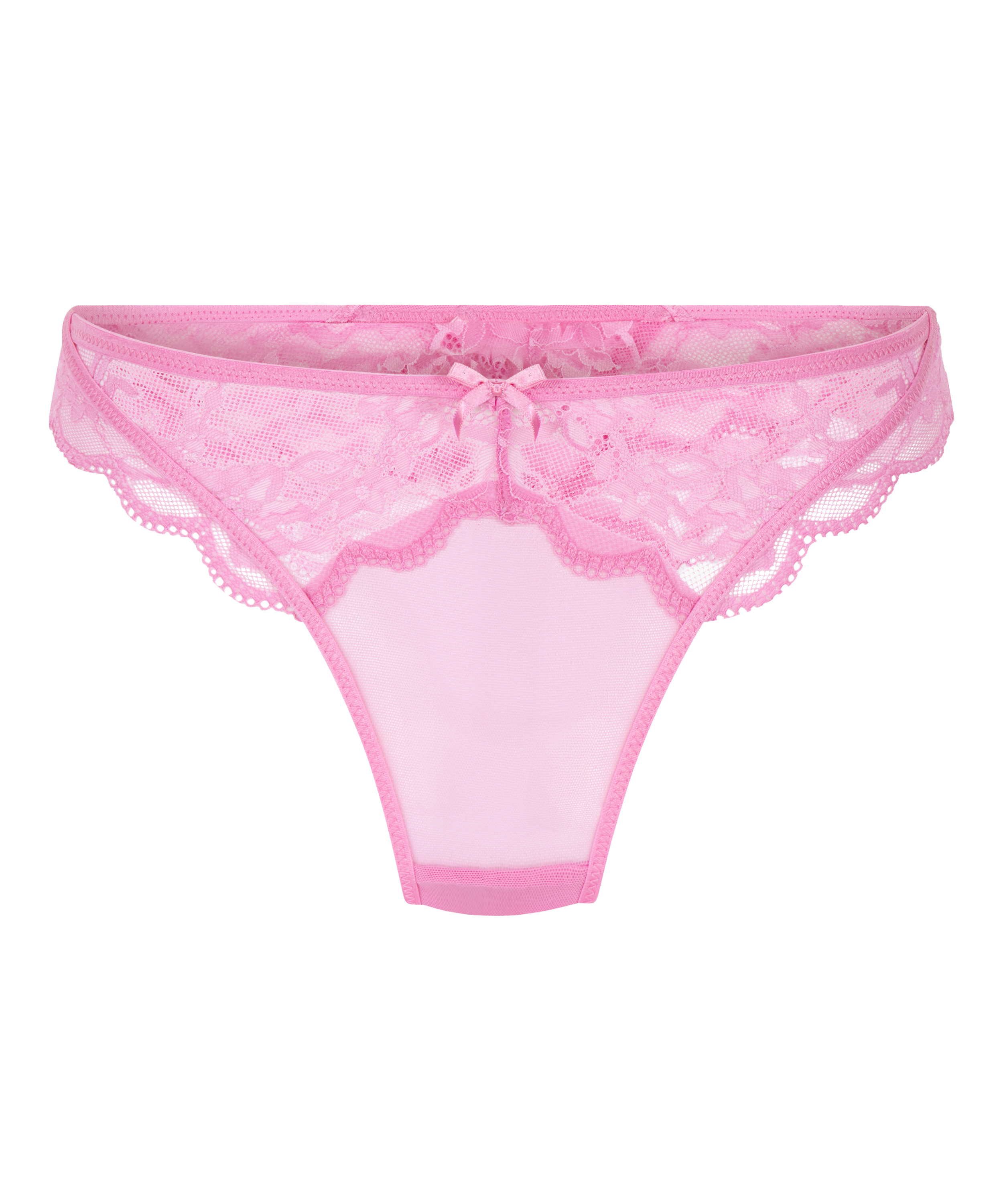 Complete your sexy look with this thong! The lace and mesh detail and the bow in front add the perfect finishing touch! Combine with matching items for a complete look.