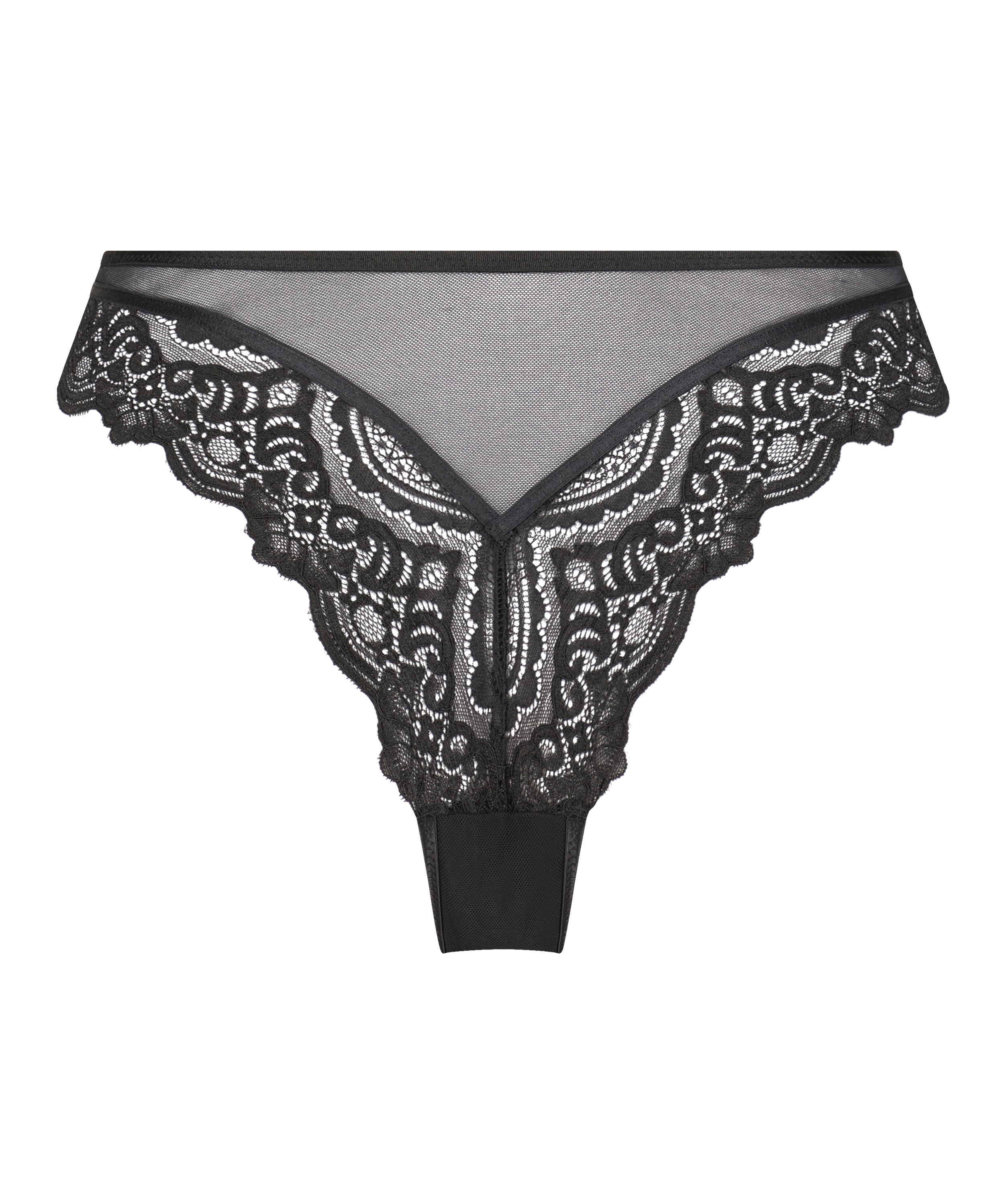 Feel good with this brazilian! A perfect high leg design to make you feel more confident and sexy. With lace detailing, and sheer fabric on the back. Find the matching bras in the collection!