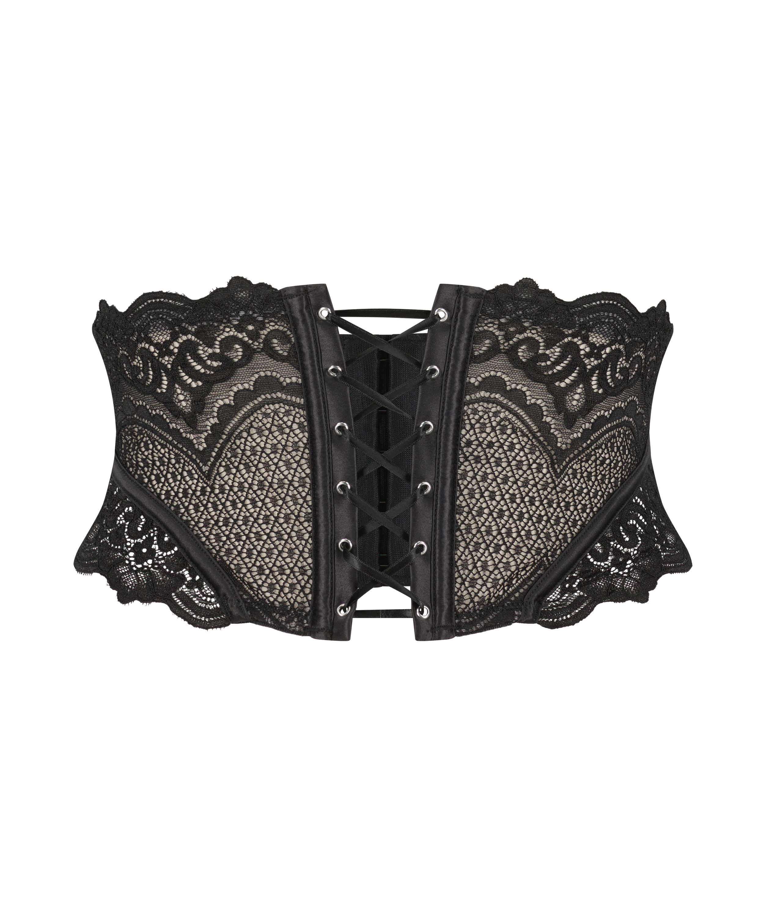Add to any set with this waspie! It has an overall lace look, with a ribbon closure in the front. The back is made for easy wear with a five-layer clamp. Add this to your set for an extra sexy look!