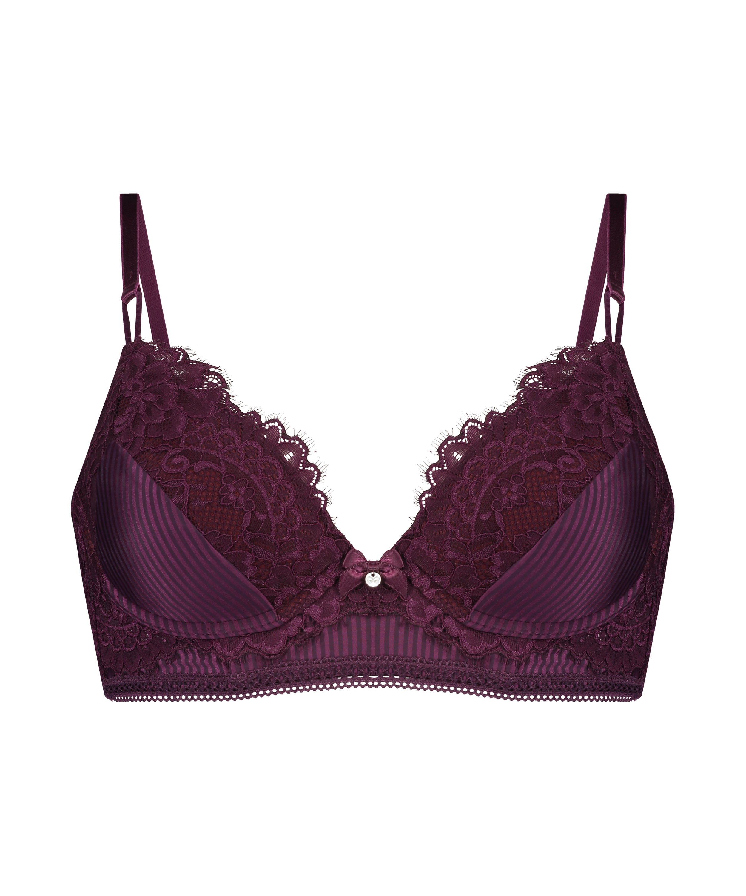 Longline bras are a real must-have! It is finished with lace and micro fabric. The micro fabric has a striped pattern in it. Combine with matching knickers for a complete set!