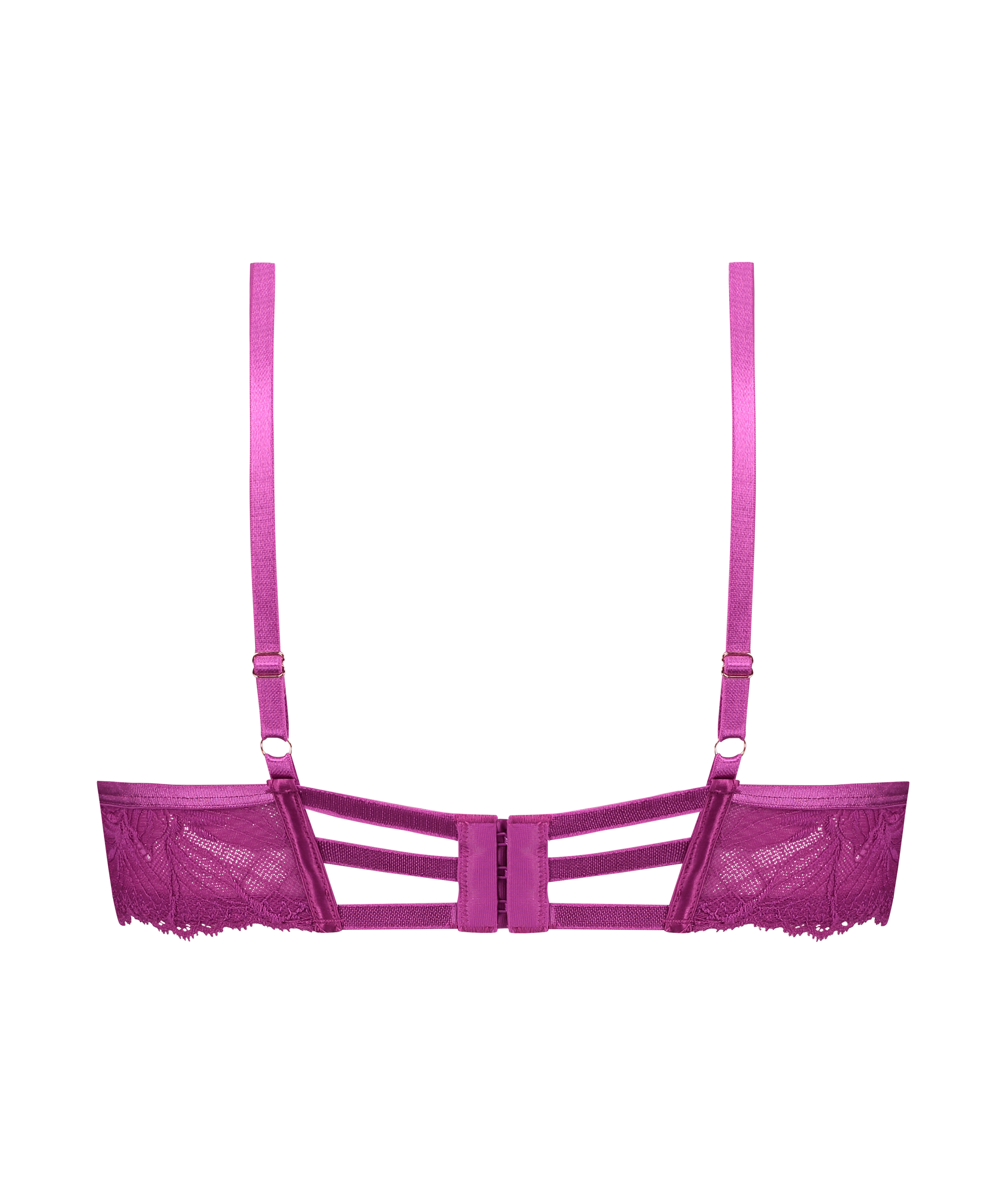 Feel sexy in this comfortable unpadded bra! It features cut out and strappy details on the cups and back. It has a complete lace and mesh semi-transparent look, finished off with a cute bow. Complete the set with the matching knickers! Part of our Private Collection.
