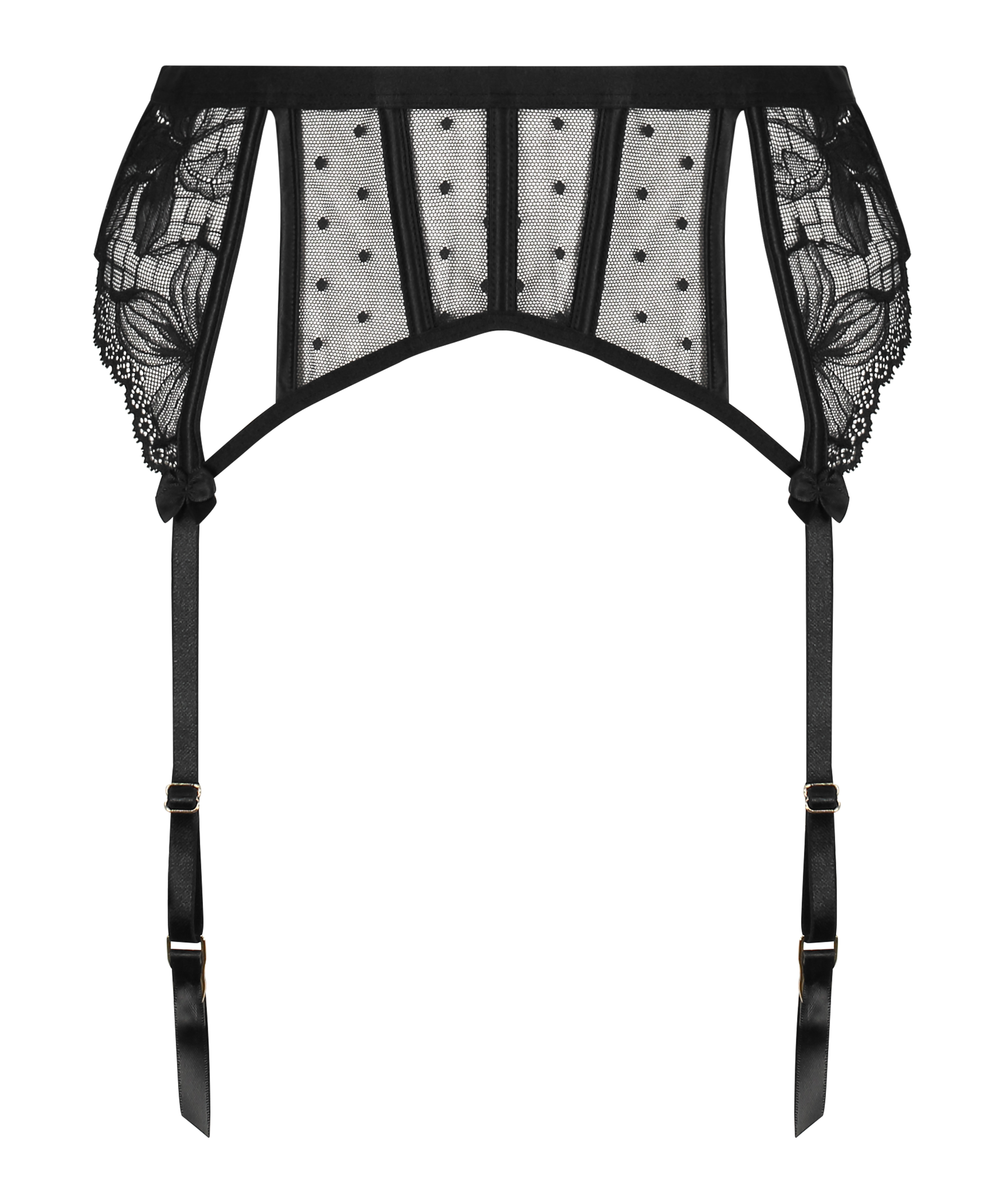 Complete your sexy lingerie set with these suspenders! With a semi-transparent look created by the all-over mesh details, and strappy details on the back. Match with the Lulu set! Part of our Private Collection.