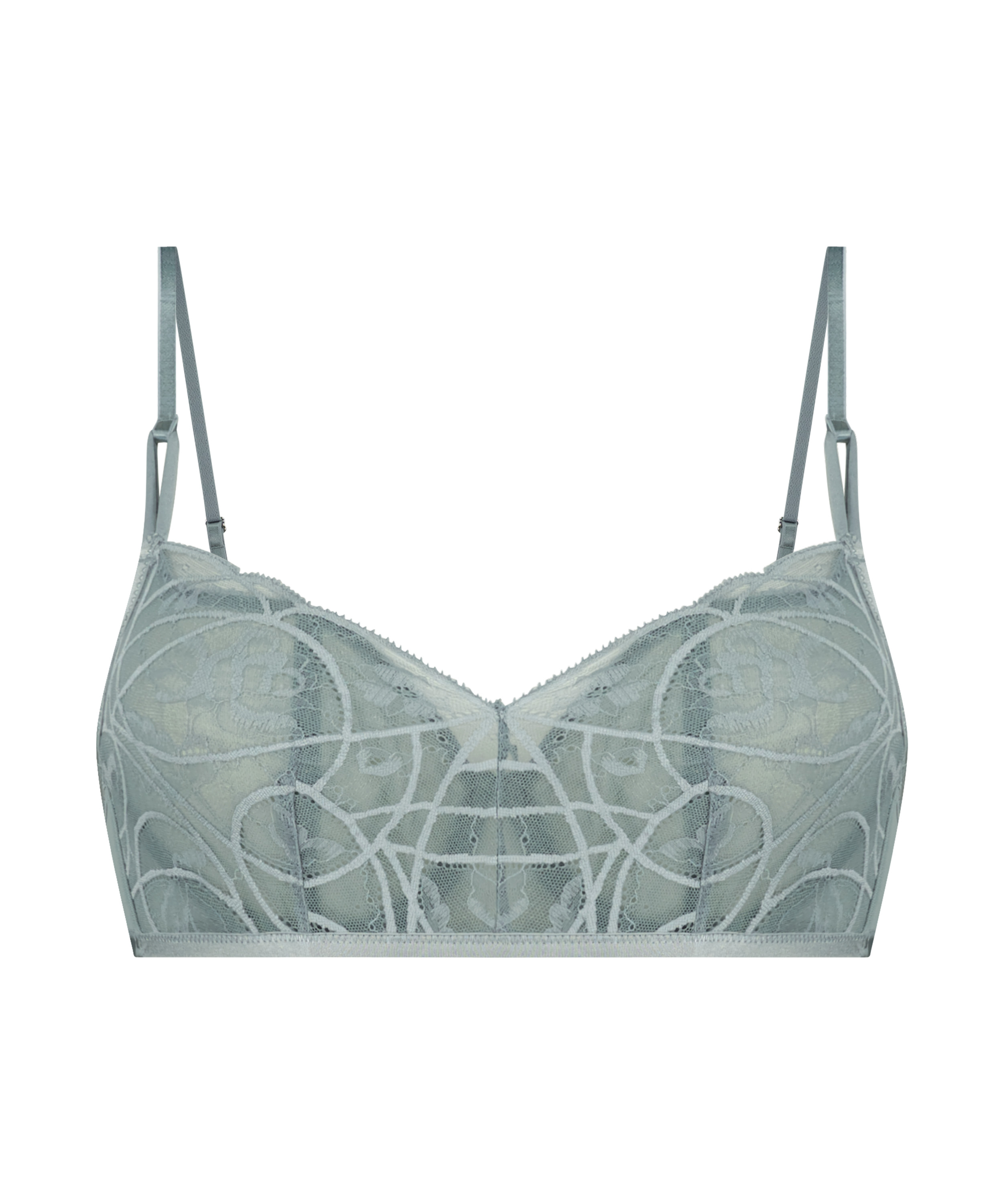 This romantic non-padded bra is perfect! With lots of lace details covering the cups, along with fun strappy details. Pair with the matching slips!
