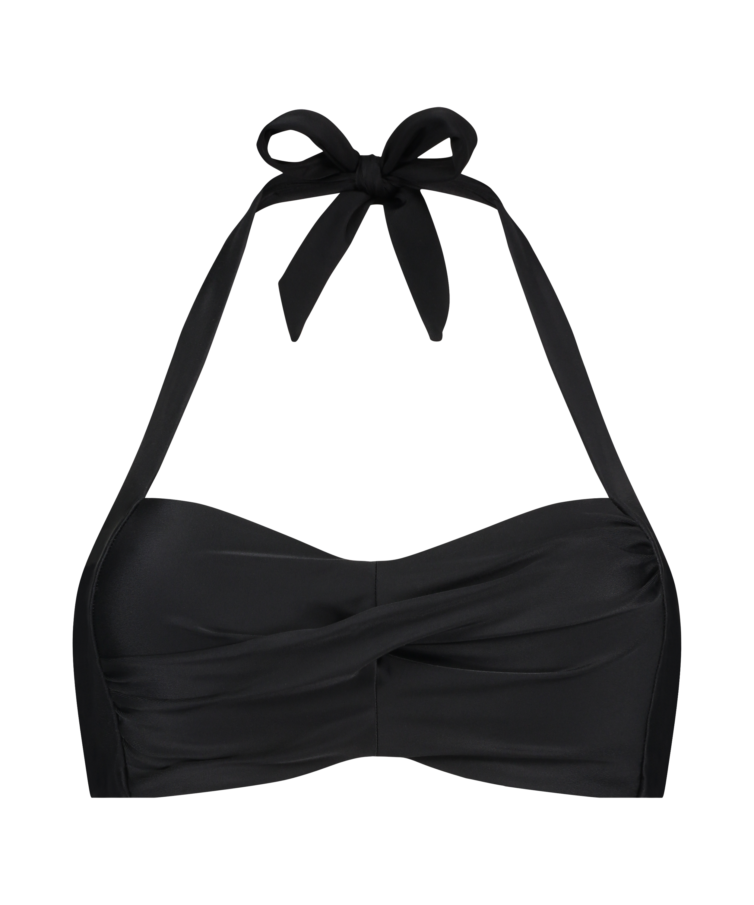 This bikini top is perfect for a day at the beach! With a closure on the back and a tie closure in the neck. This amazing bandeau top is padded and finished off with nice details on the front. Combine with the a matching bottom to complete the look.
