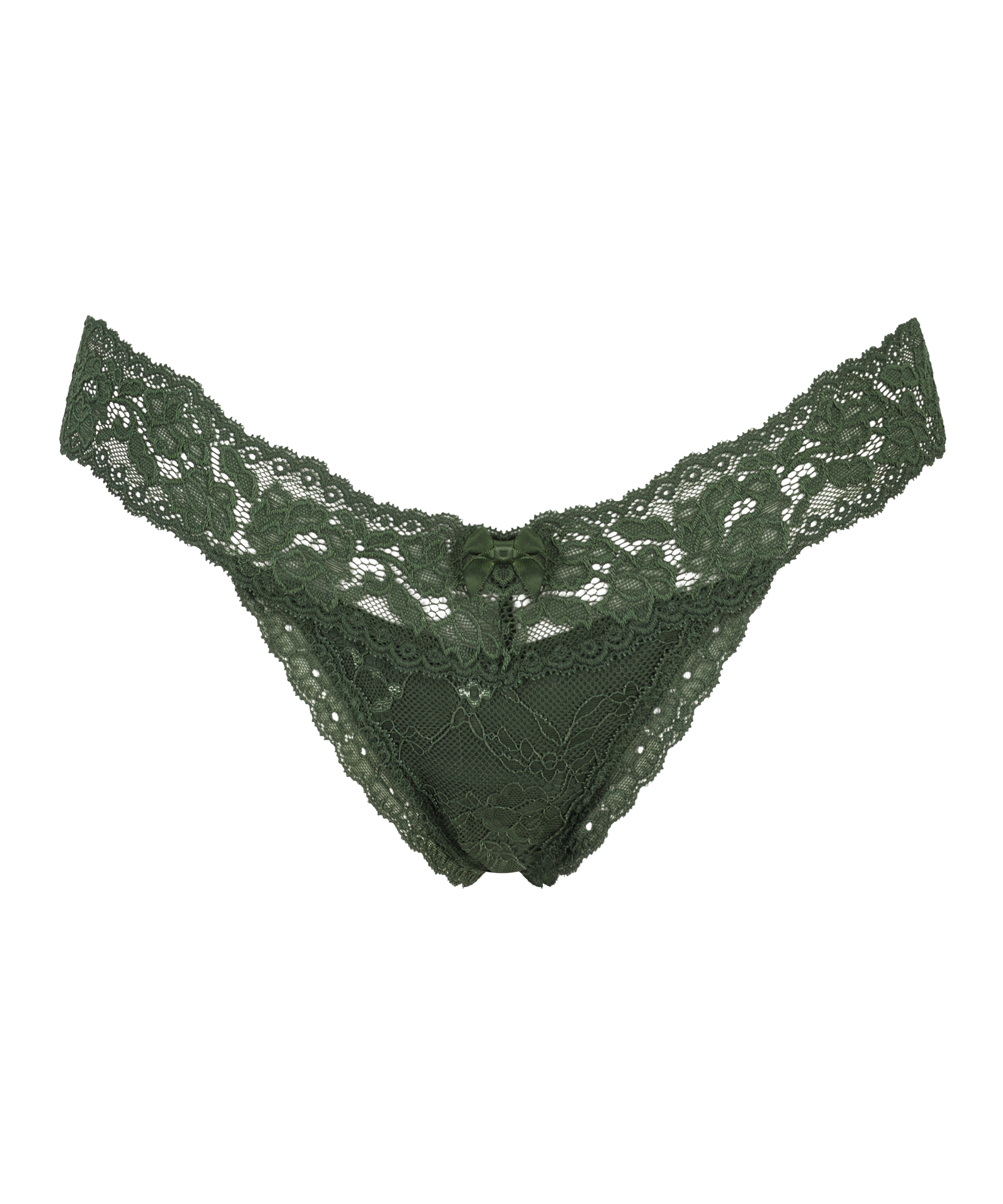 We love lace! This thong's V-shape cut is extra low. Mix and match! This super comfortable essential has a new and improved hand feel, very soft and stretchable. With a beautiful flower pattern lace which makes this style extra fashionable.