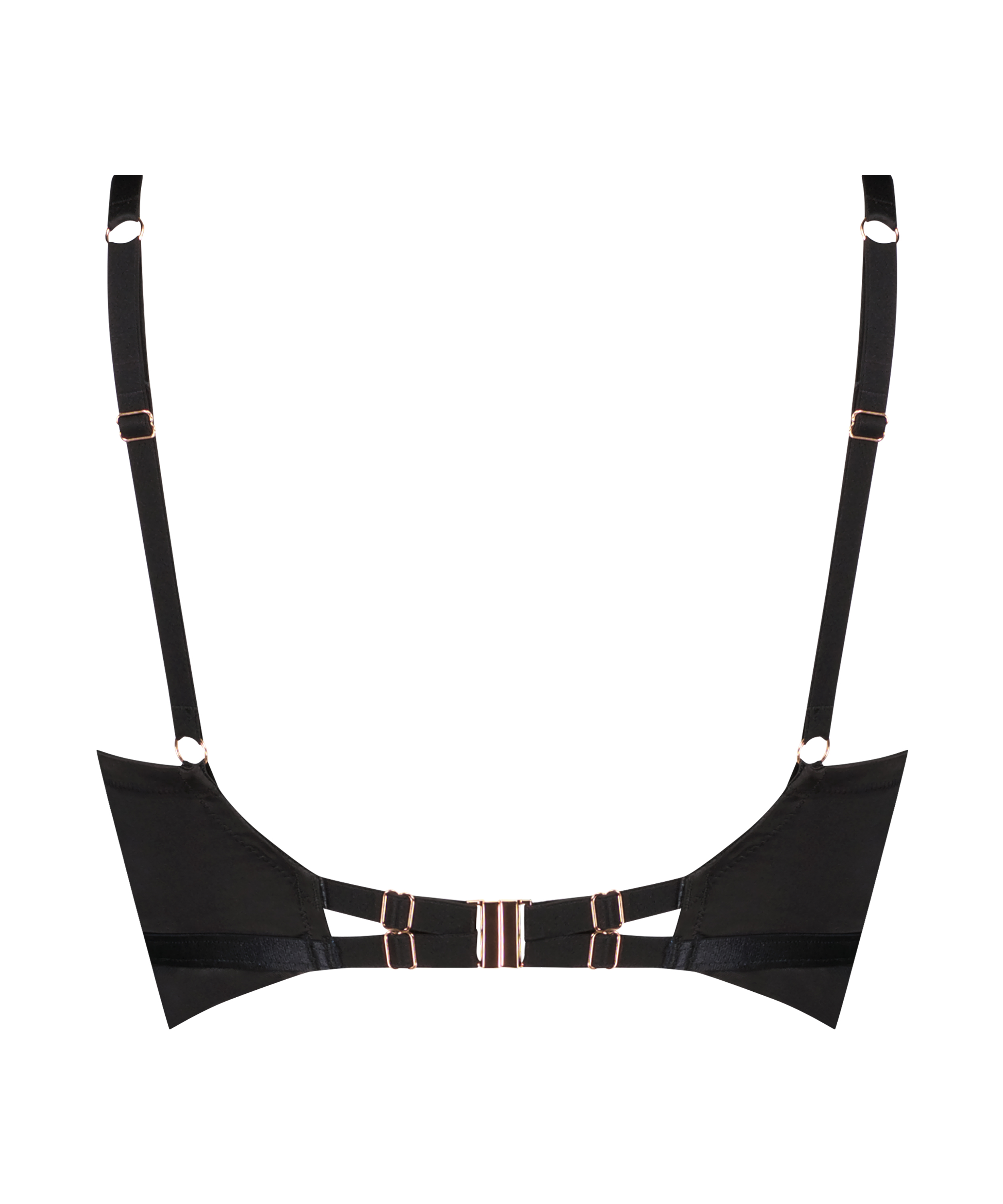 Feel stunning in this luxurious and elegant bra! With gorgeous floral lace and high-quality mesh fabric that hugs your skin in this longline fit. The padding is shaped inside the bra for the perfect support and fit without having an underwire. Style it with the matching Magdalena collection items to complete your lingerie set. Part of the Noir collection.