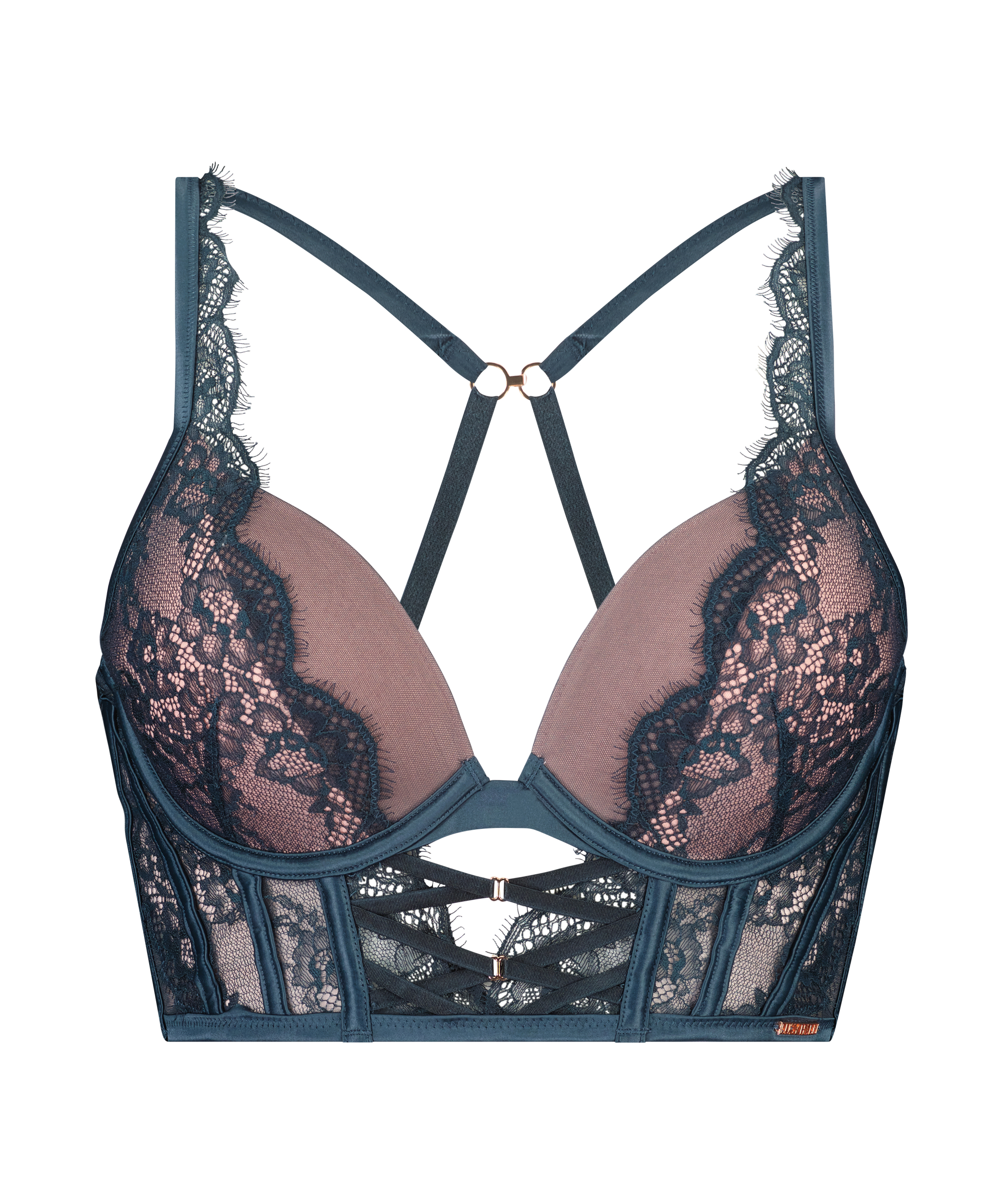 Create a beautiful full bust with this push-up long line bra! The bra also has fine details in lace, mesh and straps on the front. Pair this bra with matching knickers for a complete lingerie set. Part of the Lucy Hale collection.