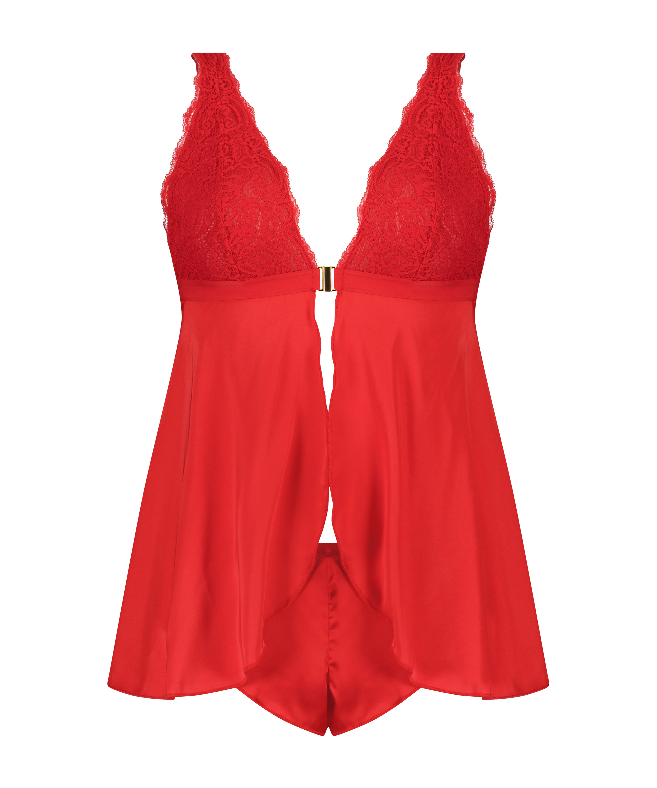 Looking for a sexy babydoll? If so, this one is just what you're after. With an open front, made in a satiny material. It has lace detailing that carries on over the adjustable shoulder straps. Combine with matching knickers.