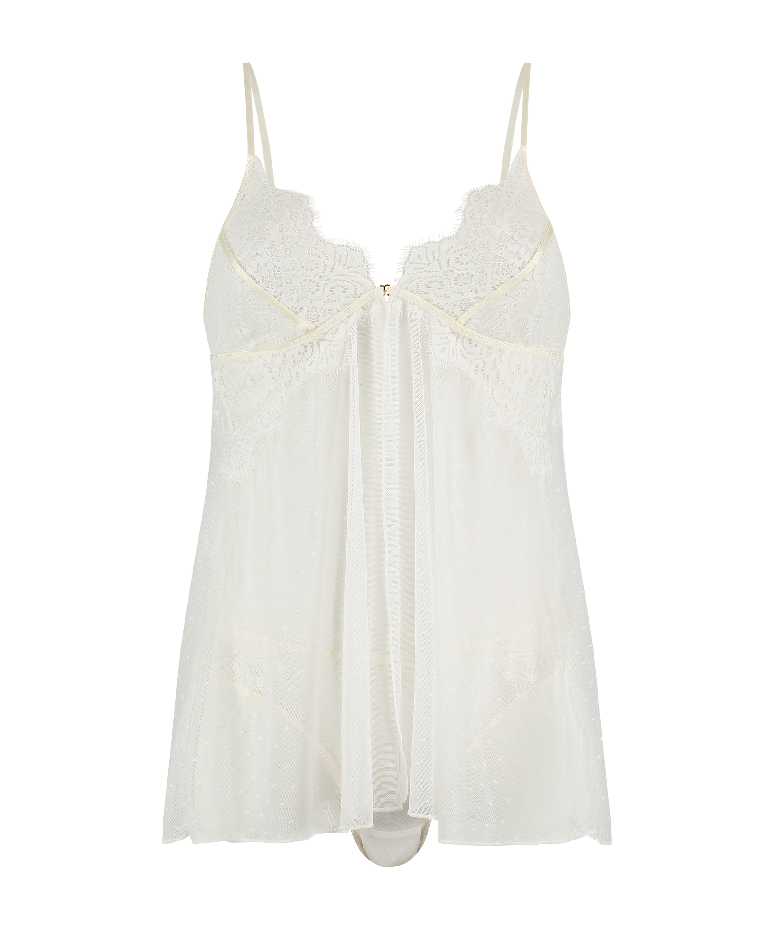 This baby doll is exactly what you are looking for! With an all over lace and semi-transparent look. The cups are also covered in lace and strappy details. It has frontal closure for easy wear and removal. The best part, it comes with matching knickers!