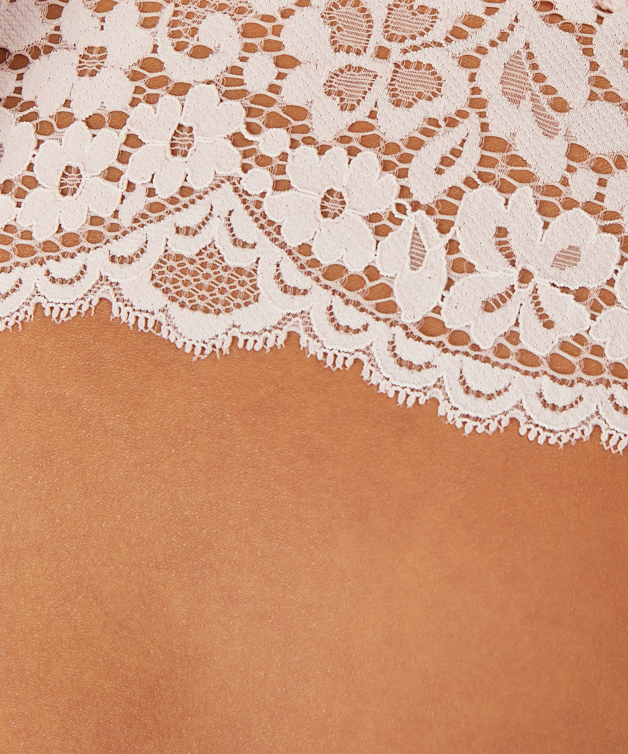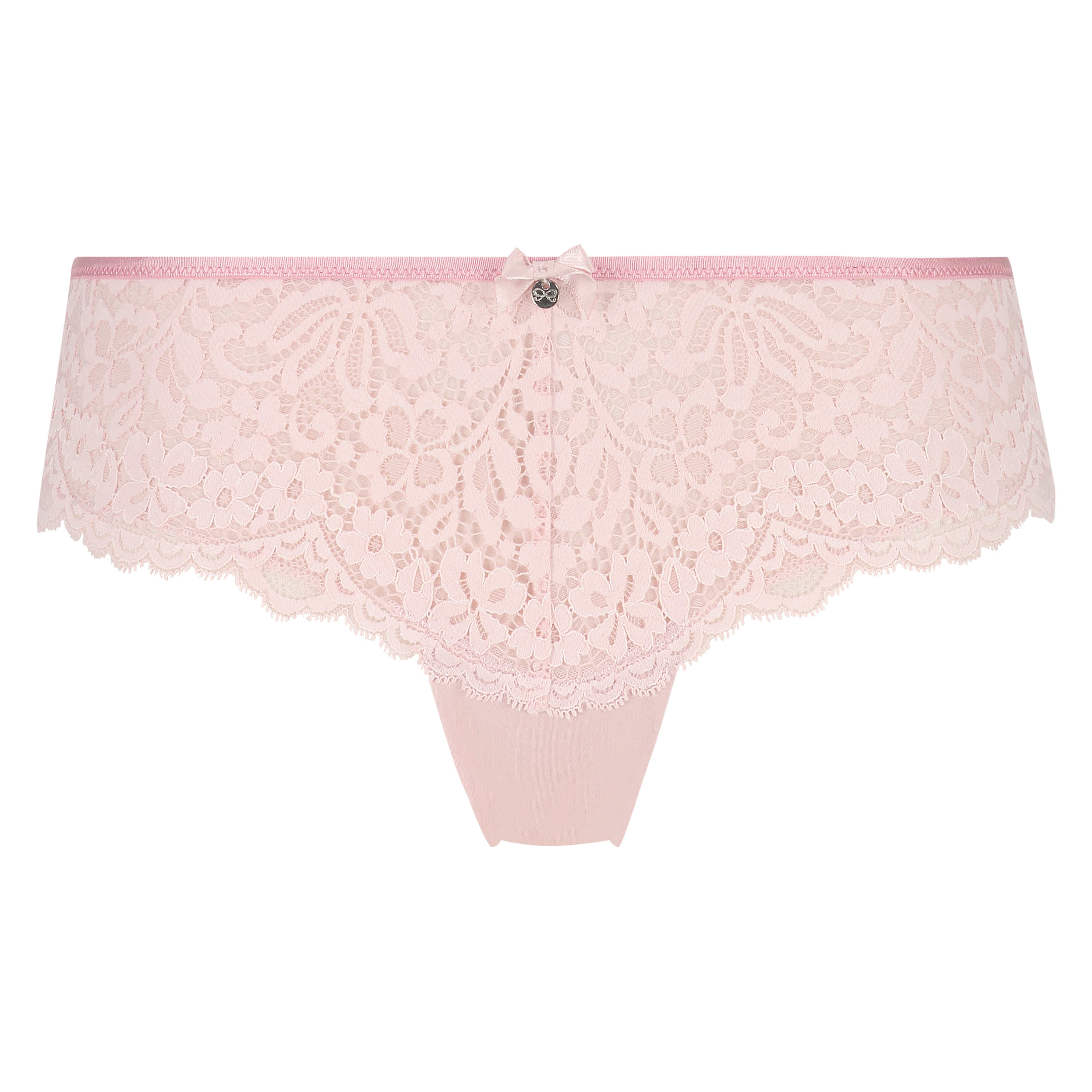 We love lace! These pretty Brazilian knickers are finished with floral-patterned lace. Combine with the matching bra for a complete lingerie set.