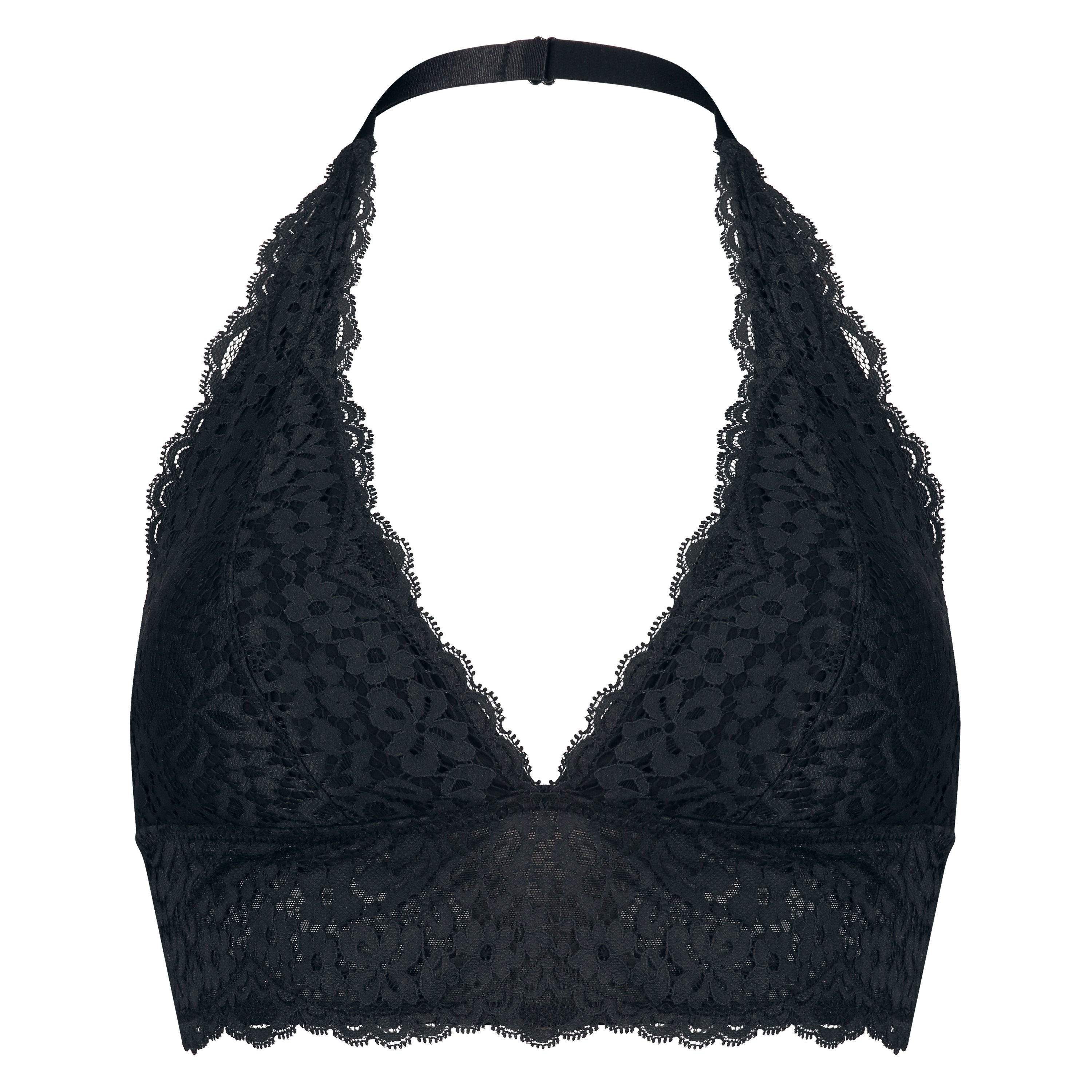 This bralette is fully finished with lace. At the bottom the lace runs a bit longer, which gives the bralette a longline effect! Combine it with the matching knickers for the complete look!