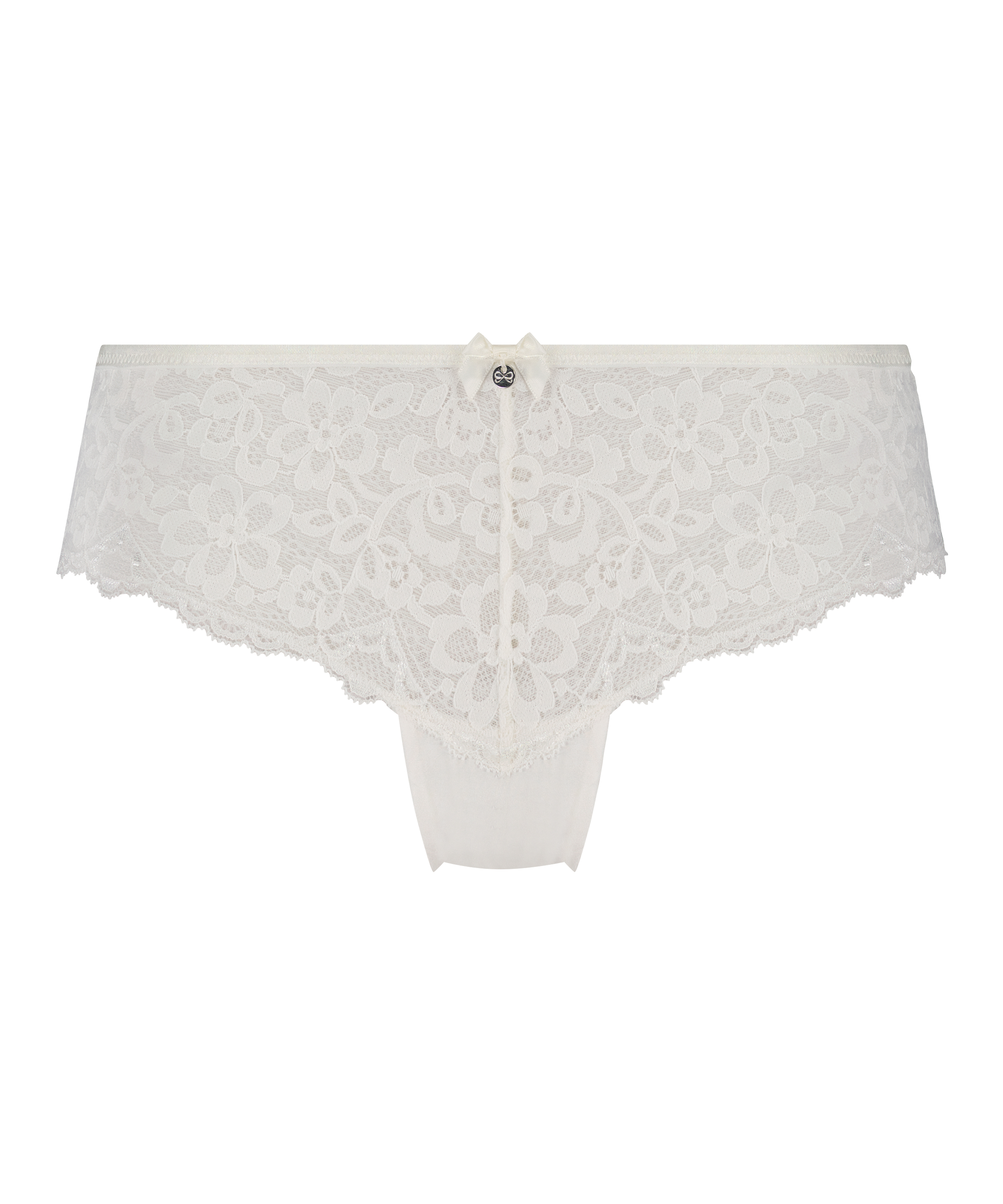 These Brazilian knickers are finished with all-over lace for a super sexy look. A small bow in the middle adds a finishing touch. Combine with the matching bra for a complete look.
