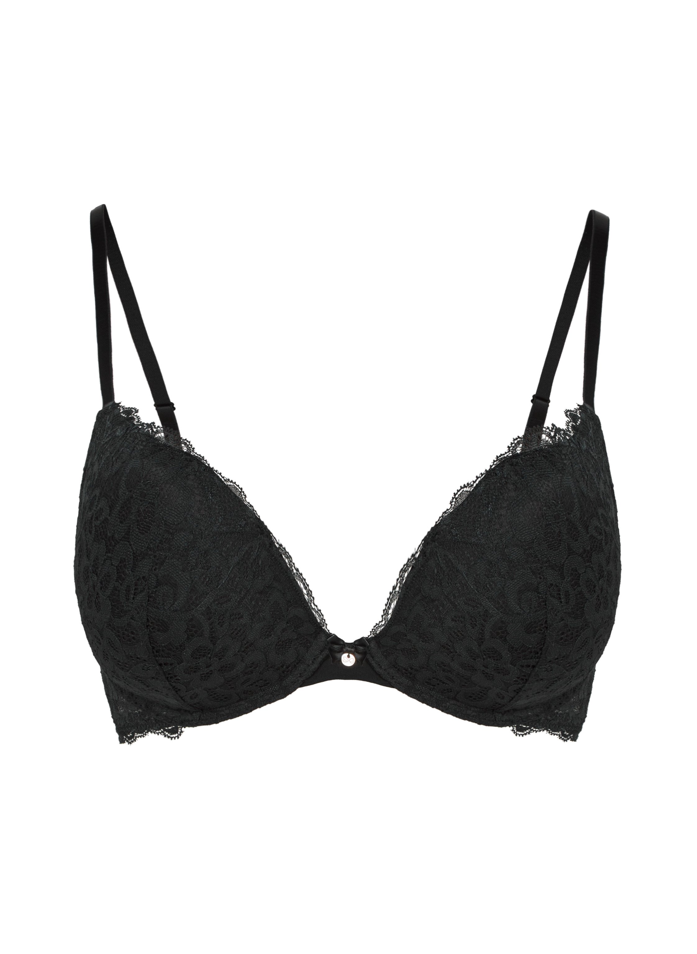 This bra is made completely from lace for a super sexy look. A small bow between the cups adds a finishing touch. Combine with the matching knickers for a complete look.