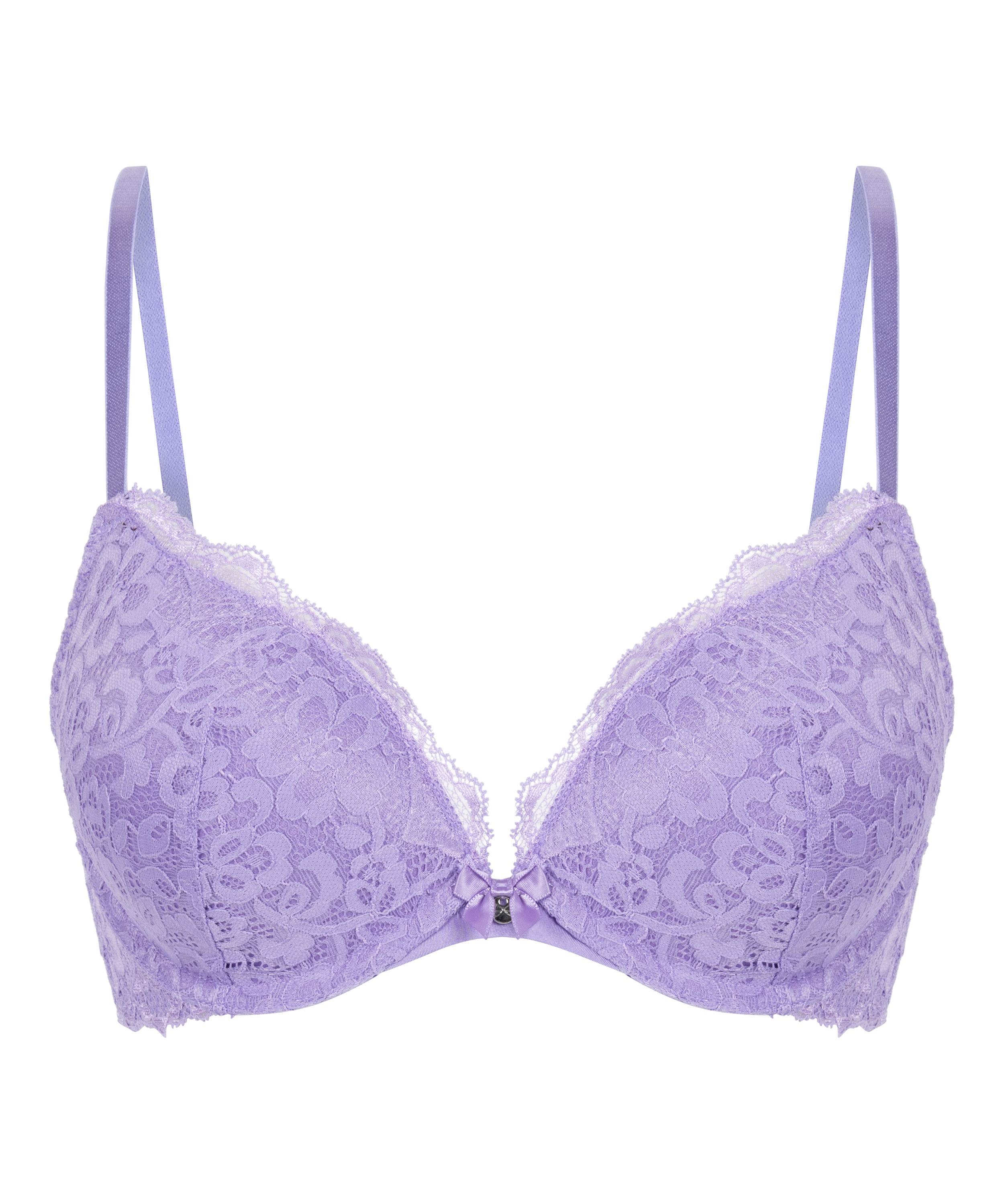 This bra is made completely from lace for a super sexy look. A small bow between the cups adds a finishing touch. Combine with the matching knickers for a complete look.
