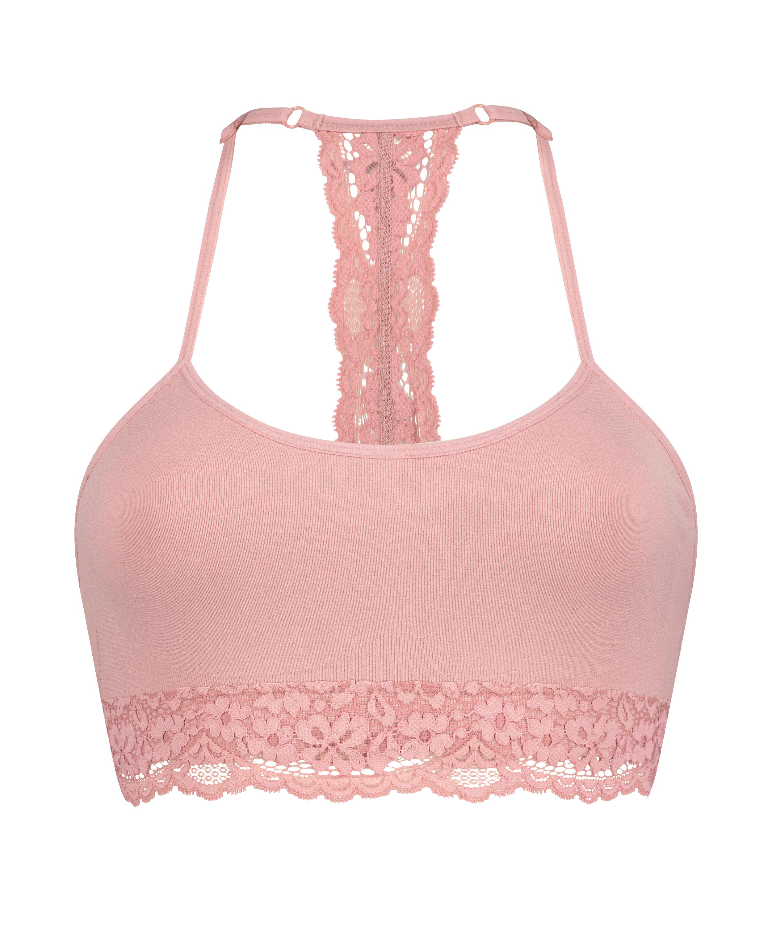 We love this seamless bralette! The bralette has lace details on the back and under the cups and is non-wired so it is super comfy.
