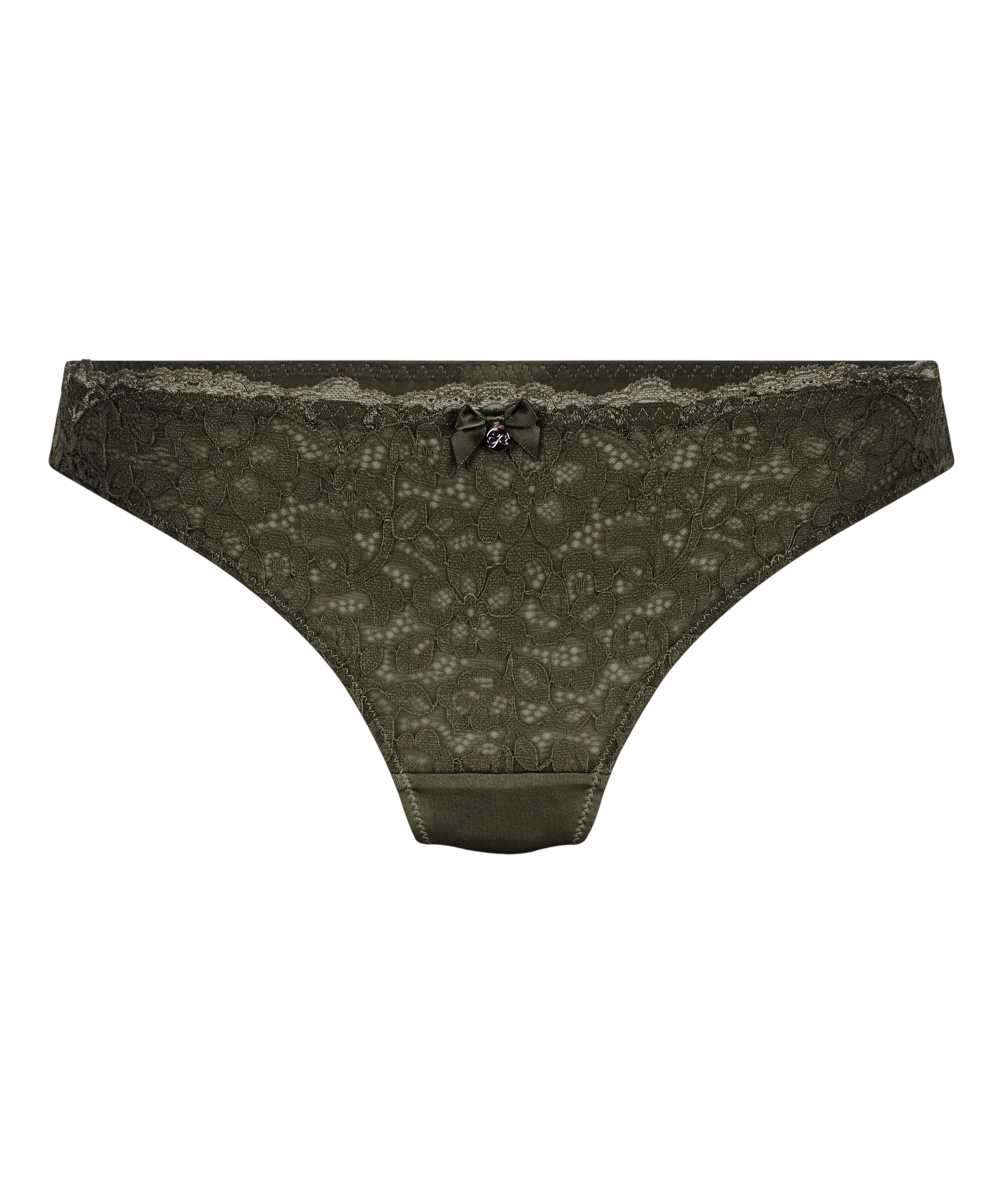You'll look adorable in this thong! It features all-over lace with a floral pattern and is finished with a small bow in the middle. Combine with the matching bra for a complete look.