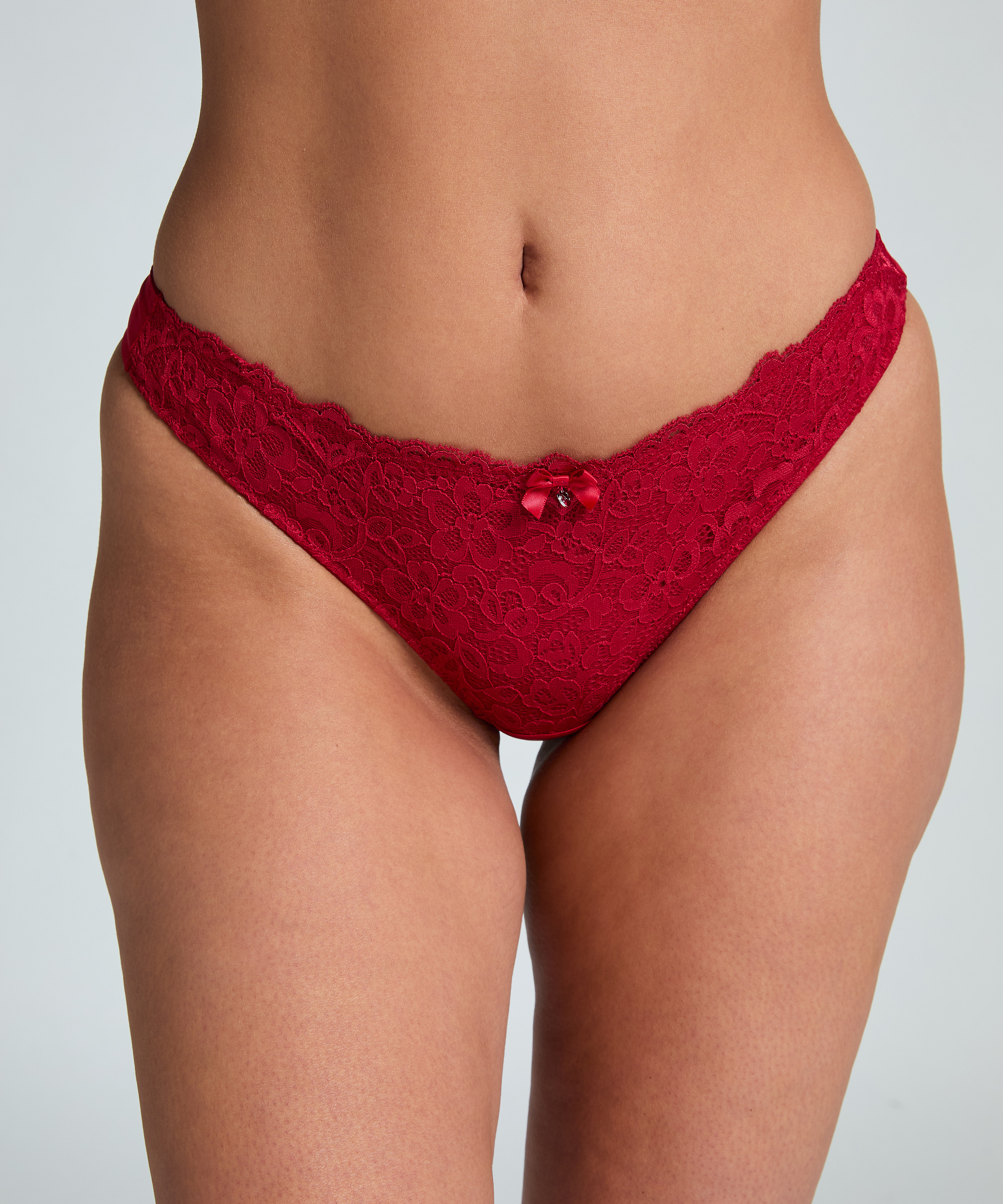 You'll look adorable in this thong! It features all-over lace with a floral pattern and is finished with a small bow in the middle. Combine with the matching bra for a complete look.