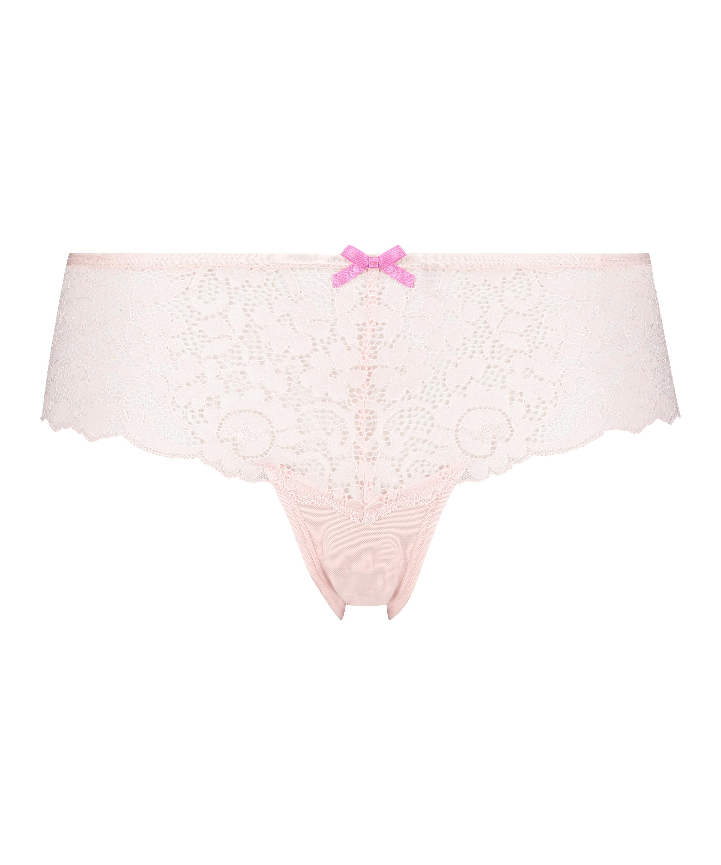 With these Brazilian shorts, you will steal the show! Made entirely of lace, with a floral pattern. There's a little bow on the front. It sits a little higher and is therefore more comfortable. Easy to combine with any bra in the same colour!