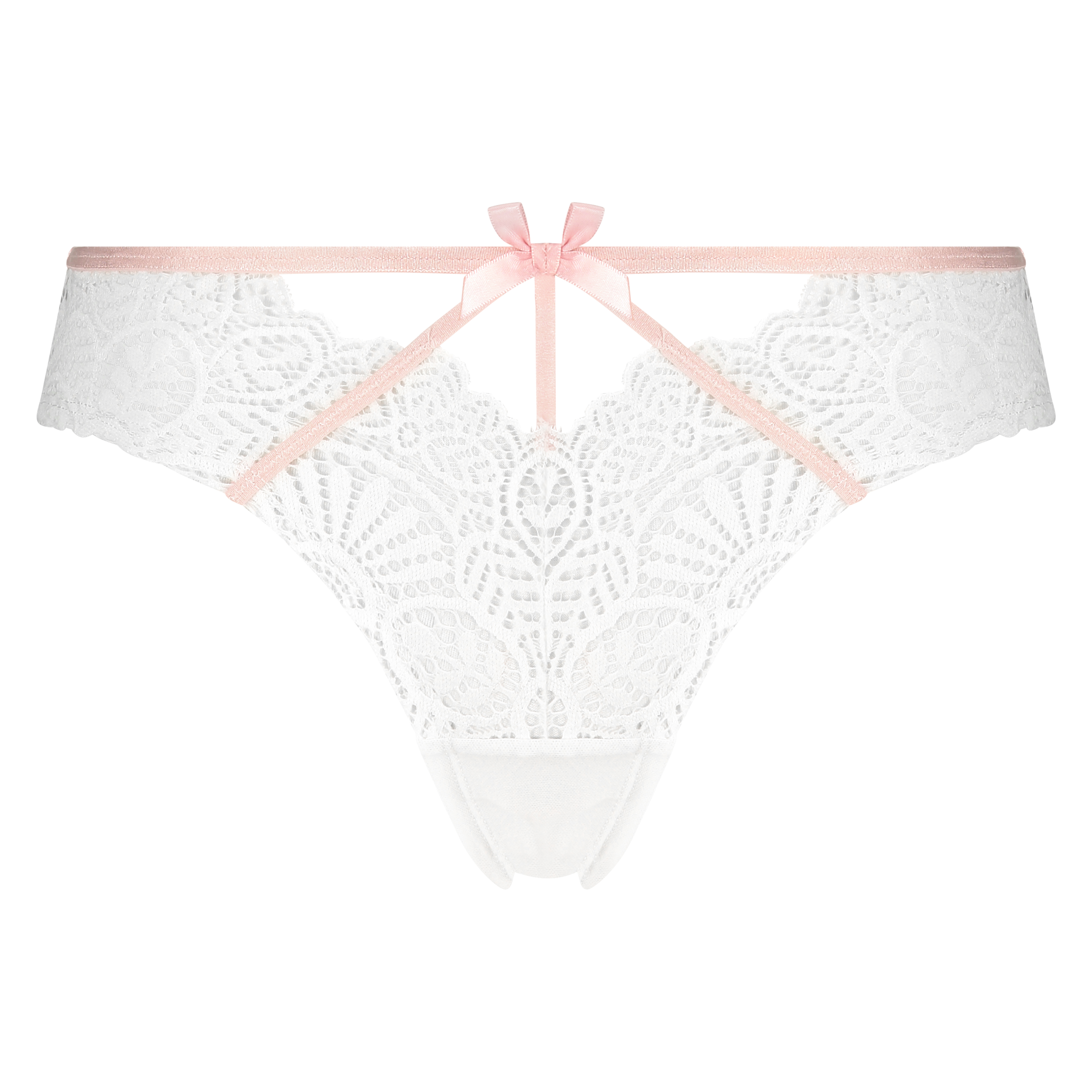 This brazilian is the perfect addition to your collection. It is finished with lace and strappy details and has a sexy cut-out detail. The back is completely finished with mesh. The bow is a great finishing touch!