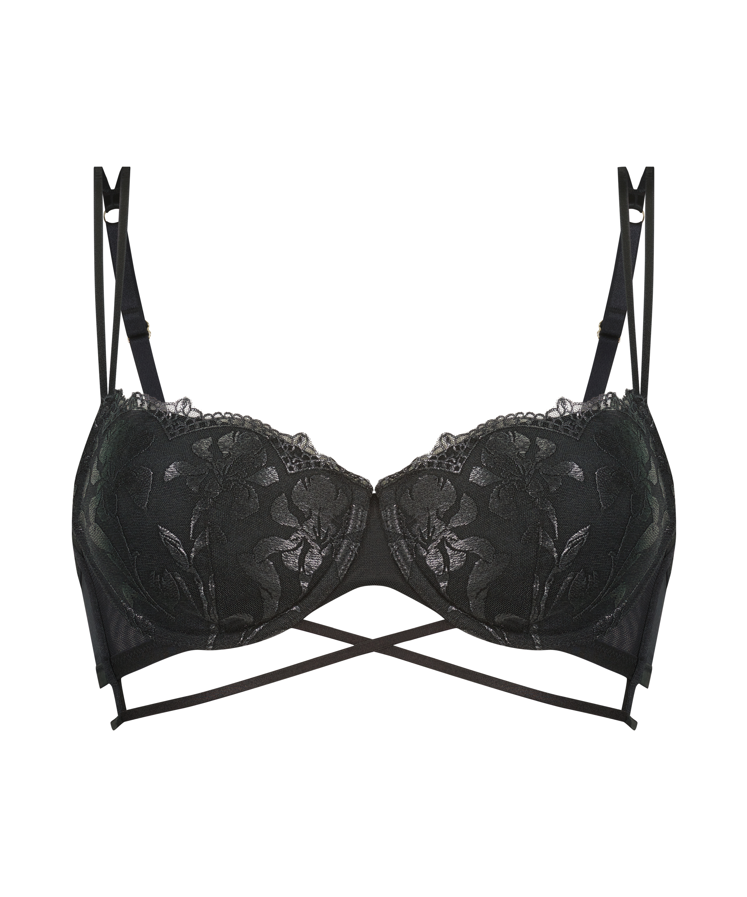 Feel confident in this bra! With cups support and lace designs. It has a ribbon feature in the front and back. Complete the set with matching knickers!