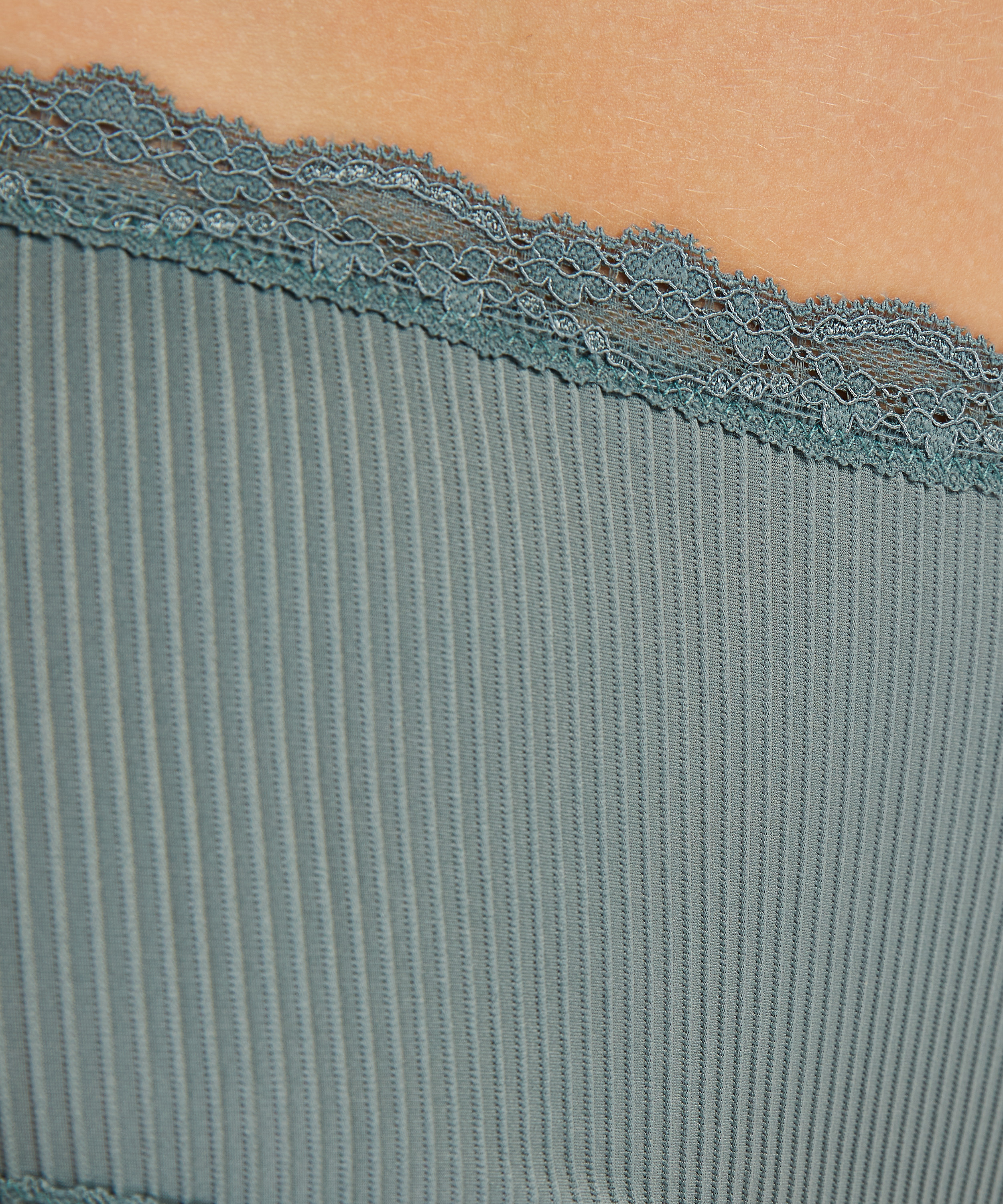 These Brazilian knickers come in lovely ribbed micro fabric with a cute bow on the front. This thong is finished with a lace trim. Lovely to combine with a matching bra or bralette.