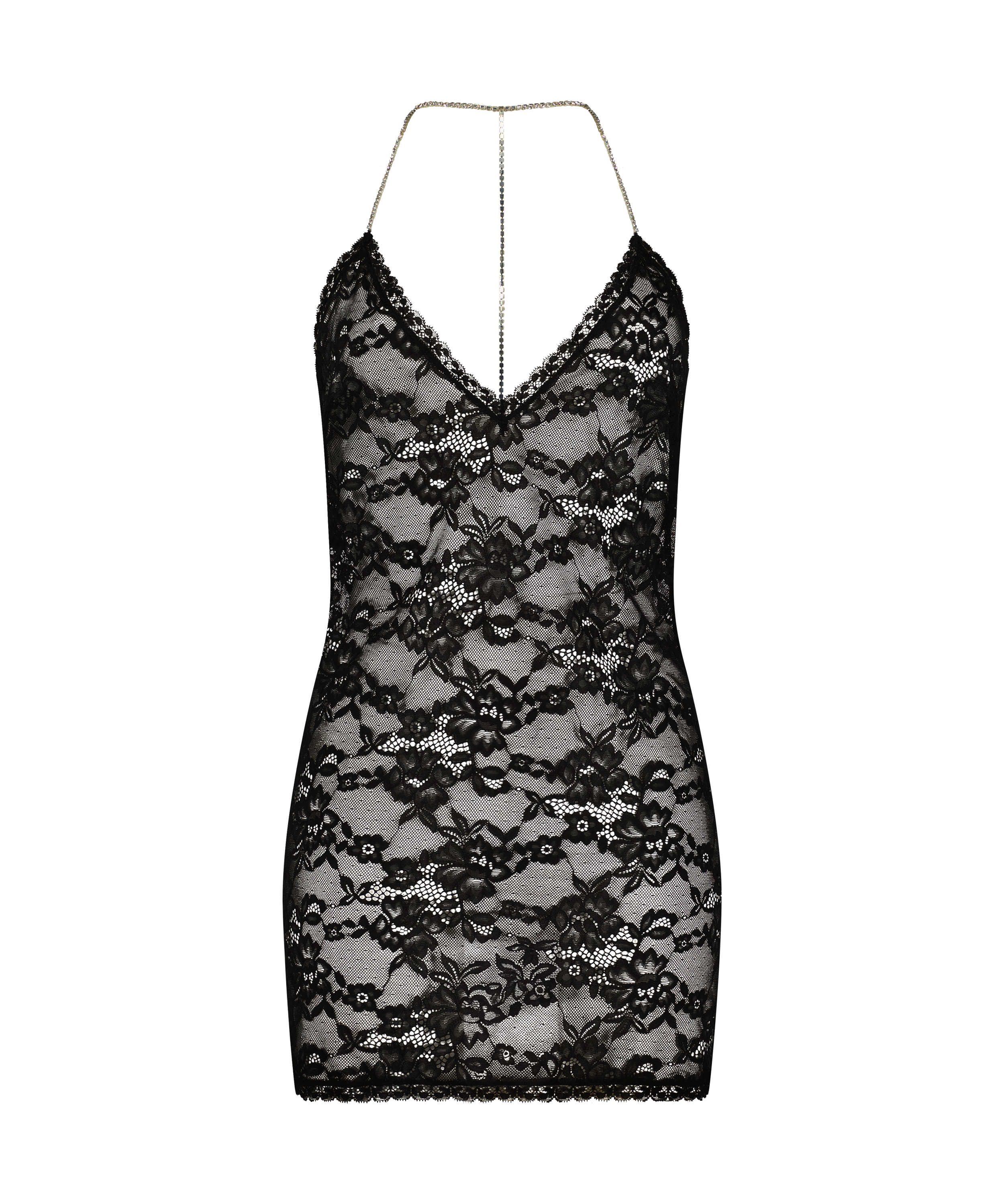 This slip dress is incredibly sexy! The lace gives this slipdress a semi-transparent and provocative look. The back is almost completely open. Match with accesoiries. Part of our Private collection.