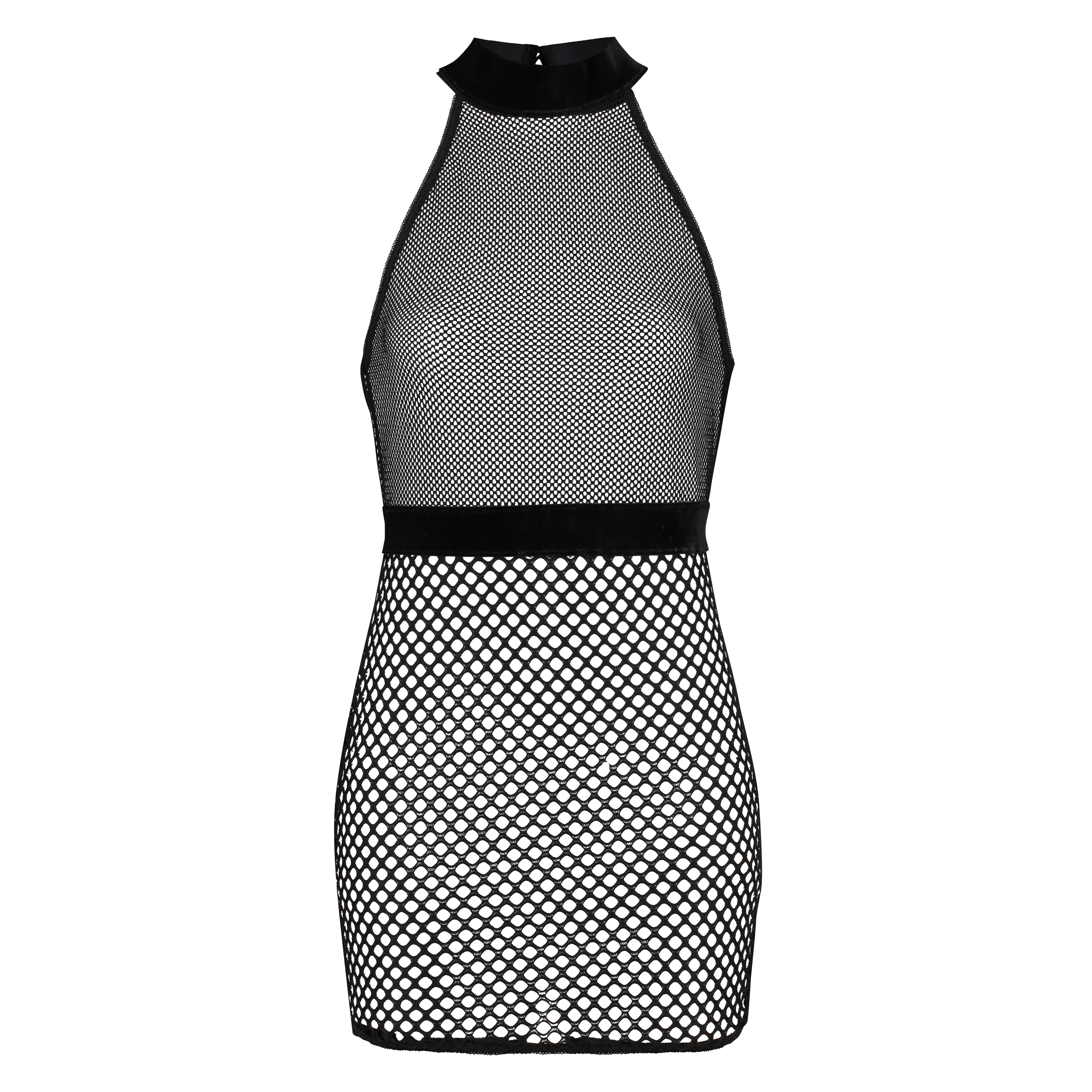 This slipdress is super sexy. It has a high neckline and is finished in velours. The rest of the slipdress is made of fishnet. Part of the Private Collection.