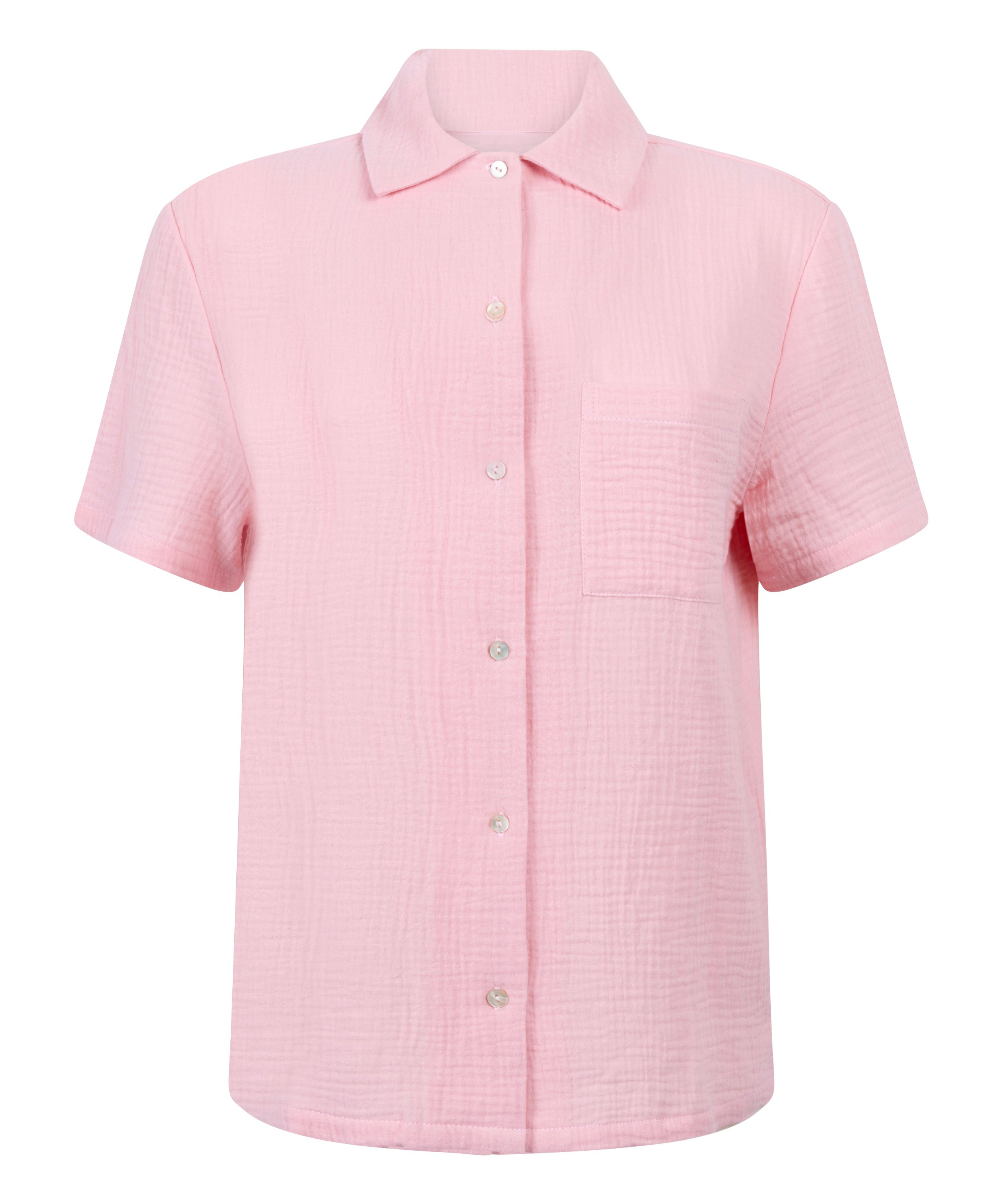Feel comfortable in this classic pyjama top with button detailing on the front. It's made out of lightweight and breathable material, perfect for hot summer nights. Complete the look with the matching pants.