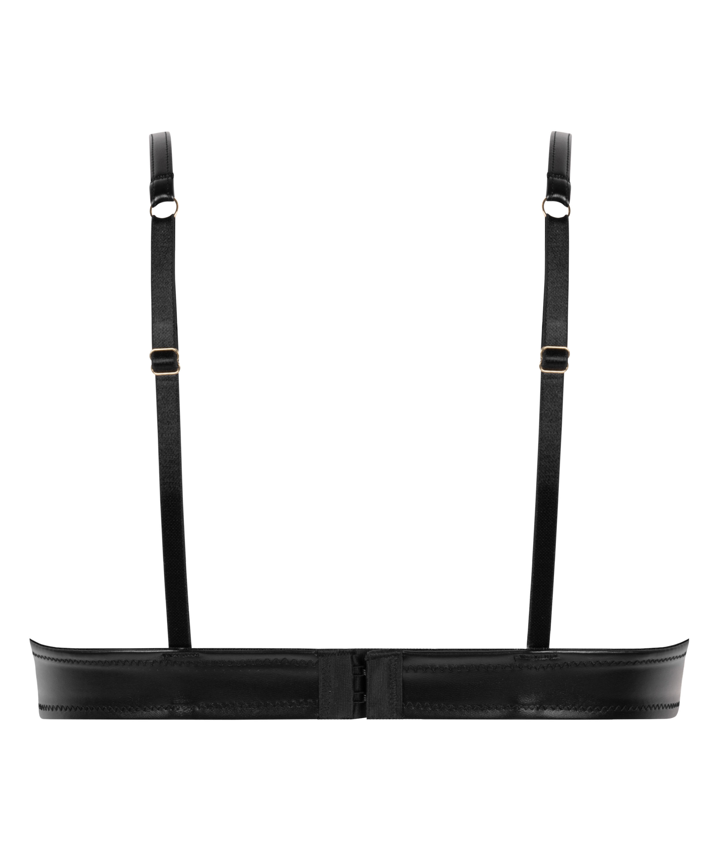 Elevate your lingerie collection with our Nadia bra, a blend of textures and bold design. This striking piece features strappy details that frame your curves, adding an edgy touch. The lace details bring a hint of romance. Part of our Private collection