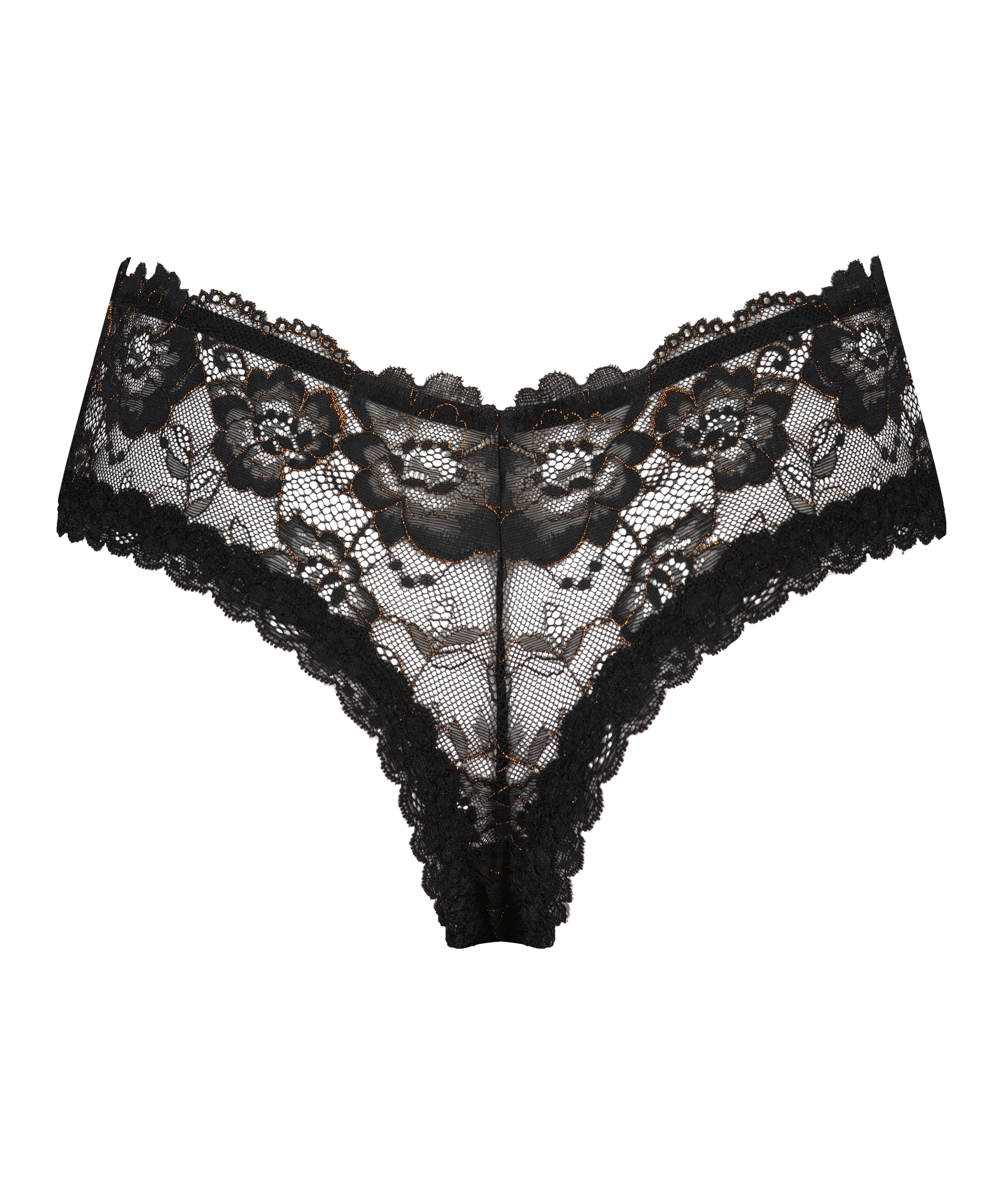 Look your best with this brazilian! With an all over semi-transparent look with lots of lurex lace details throughoit the fornt and back. Finished off with a cute frontal bow. Mix and match with the perfect bra!