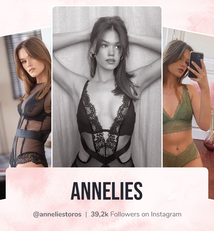 Annelies is one of our Belgian Ambassadors. She describes her style as fashionable but sexy. She likes sets but also body’s and her favorite set is black with lace!