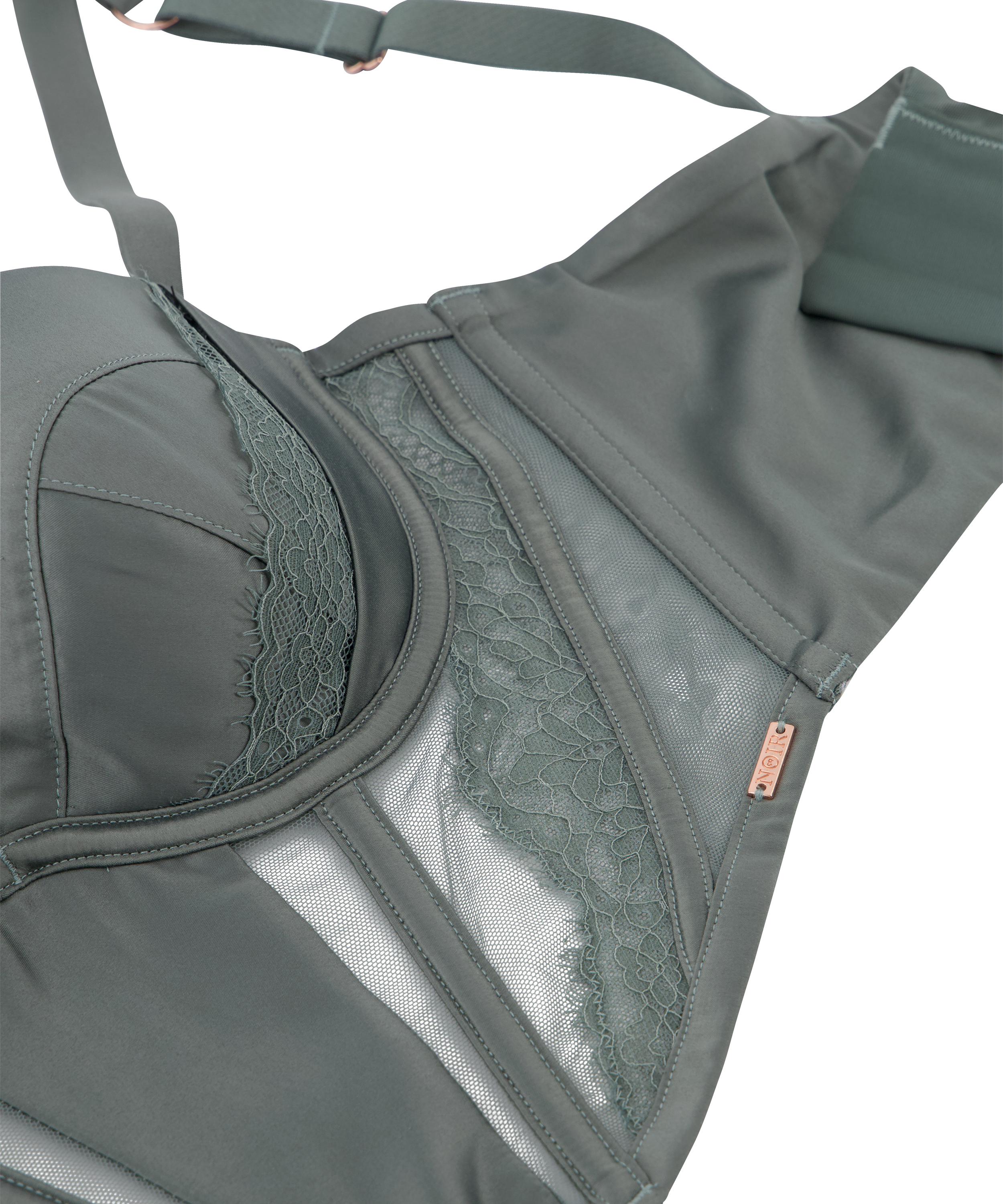 This bra is gorgeous, don't you think?! It has lovely lace and mesh details, it is underwired and padded for the most comfort. The bra is also a longline style. Combine with matching items for a complete look. Part of our Noir collection.