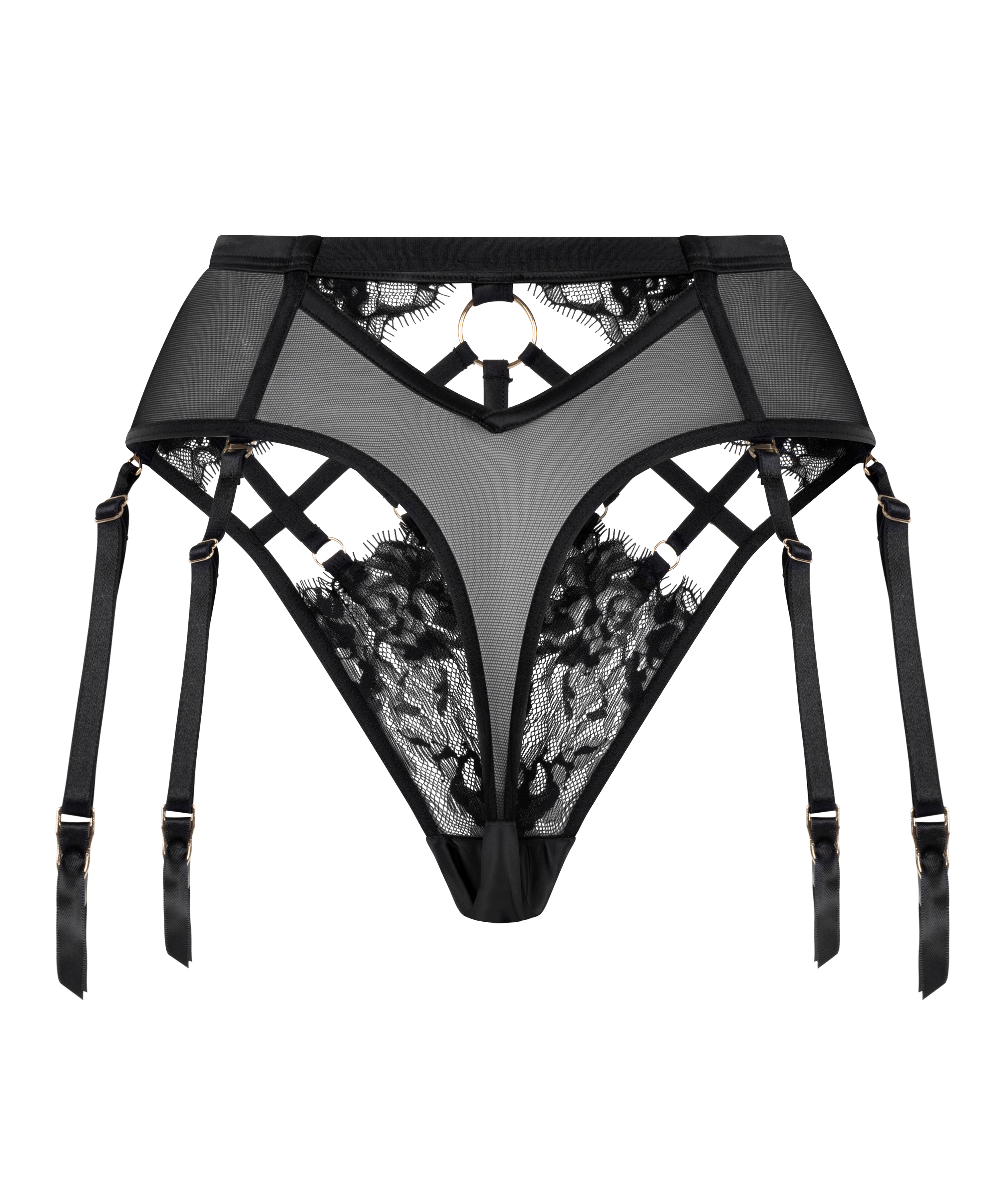 Turn up the heatwith our Nienke thong, designed to flatter and captivate. Featuring a high leg cut and high waisted fit, this piece elongates your silhouette. The lace adds a touch of romance, while the cut-out details bring a bold edge. Finished with removable suspenders for versatile styling. Combine with the matching bra for a complete look.