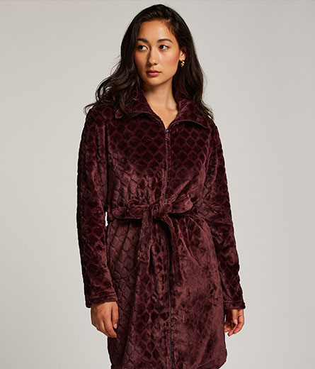 Short Fleece Ribbed Bathrobe