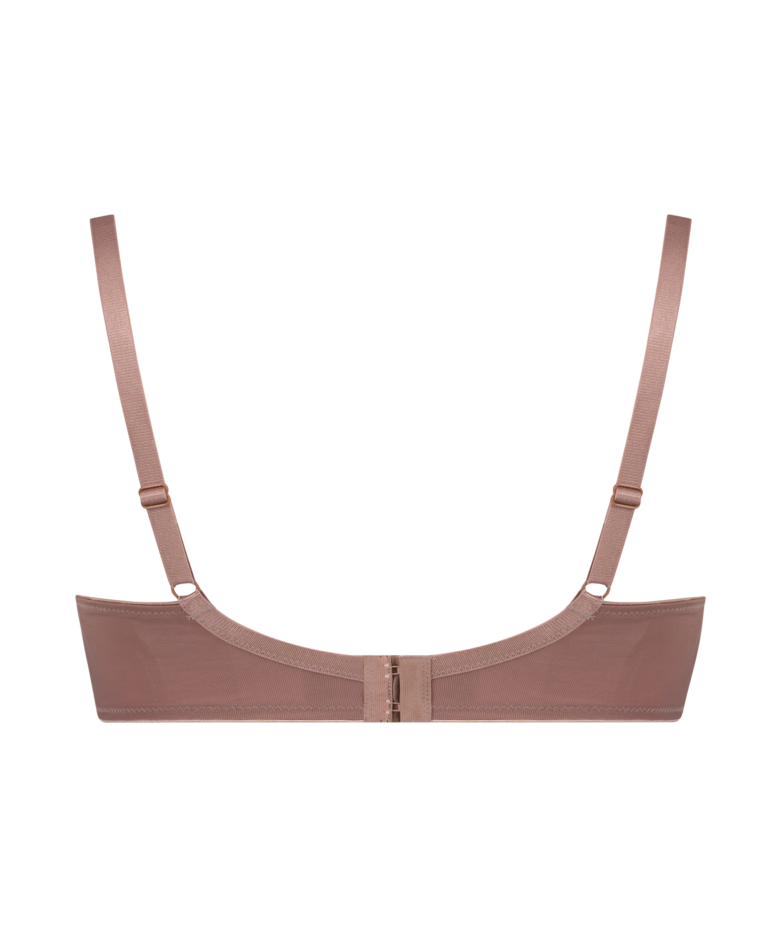 This underwired minimizer bra will make your breasts look one cup size smaller while still being very comfortable to wear. This bra is specially designed for large cup sizes. The cups are finished on the front with semi-transparent fabric.