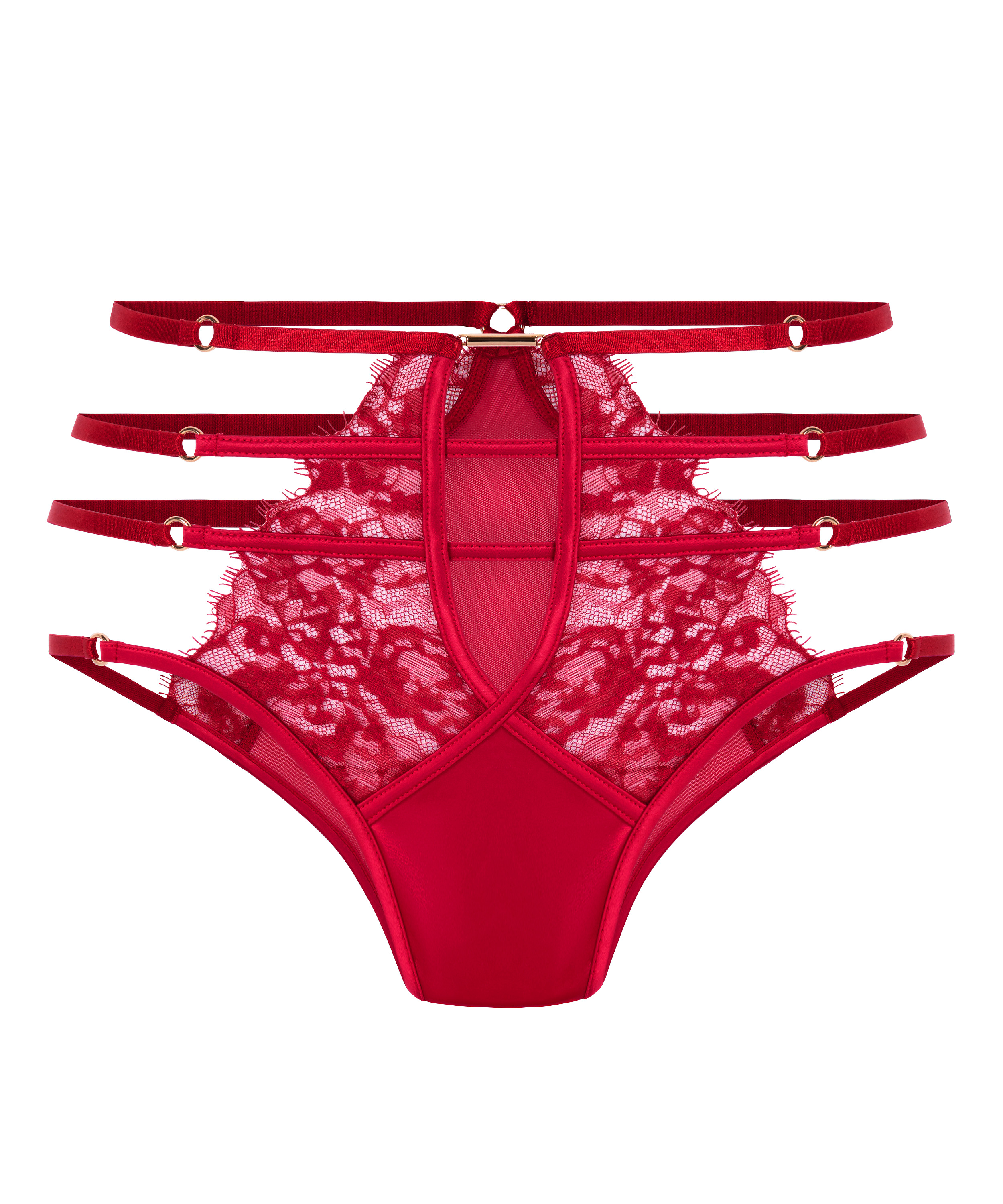 Sculpted and seductive – our Noeki brazilian is designed to make a statement. This piece features a flattering high-waisted fit, a high-leg cut that elongates your silhouette and a open crotch. Lace and mesh panels create a romantic contrast, while strappy accents and cut-out details add a bold, fashion-forward edge. Combine with the matching bra for complete look.