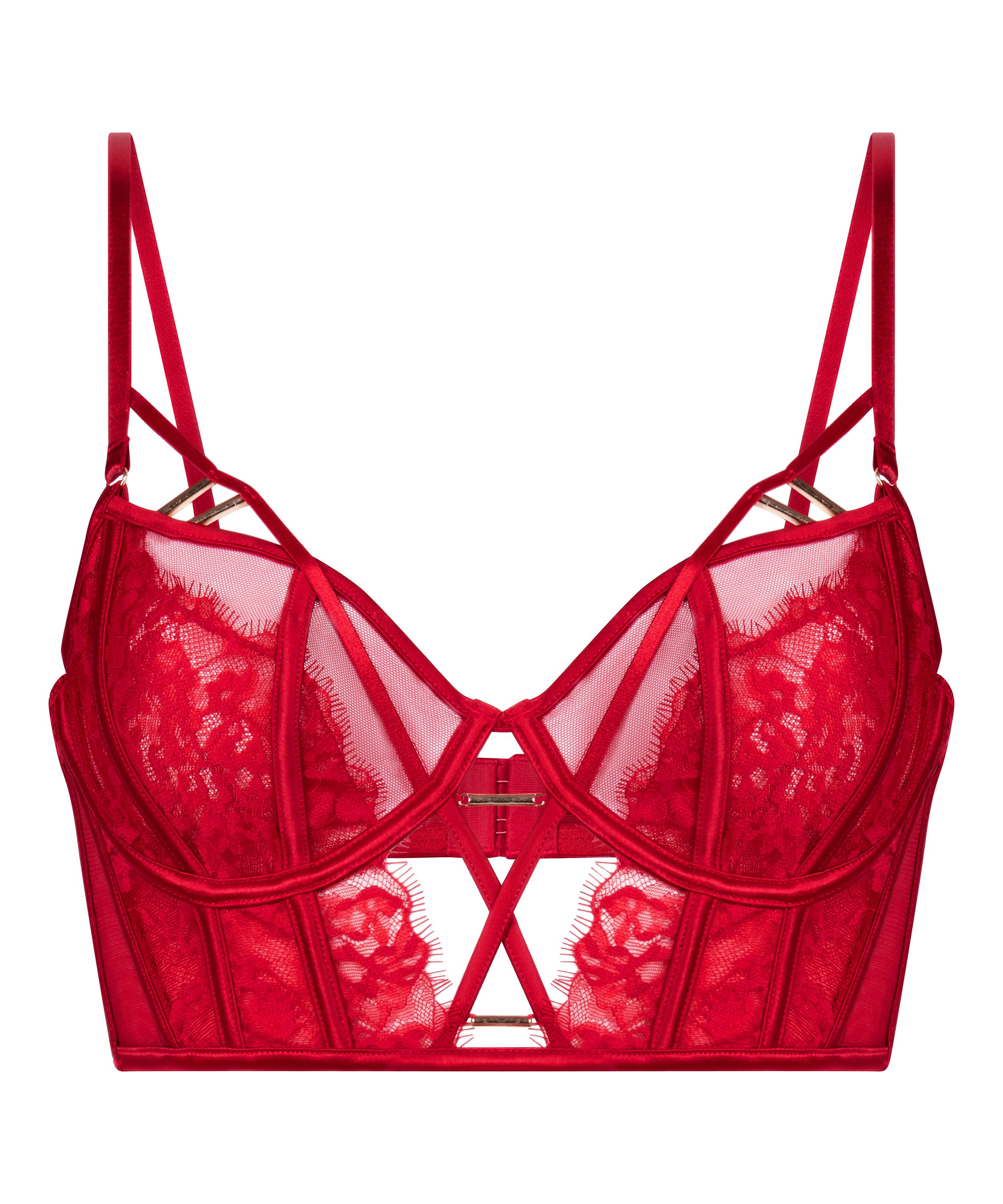 Delicate meets daring in this bra – designed to highlight your natural shape with bold, modern accents. This non-padded bra features underwired cups for gentle support and structure, while mesh and lace panels create a romantic yet edgy look. Cut-out details and strappy accents add a fashion-forward twist. Combine with the matching bottom for a complete look.