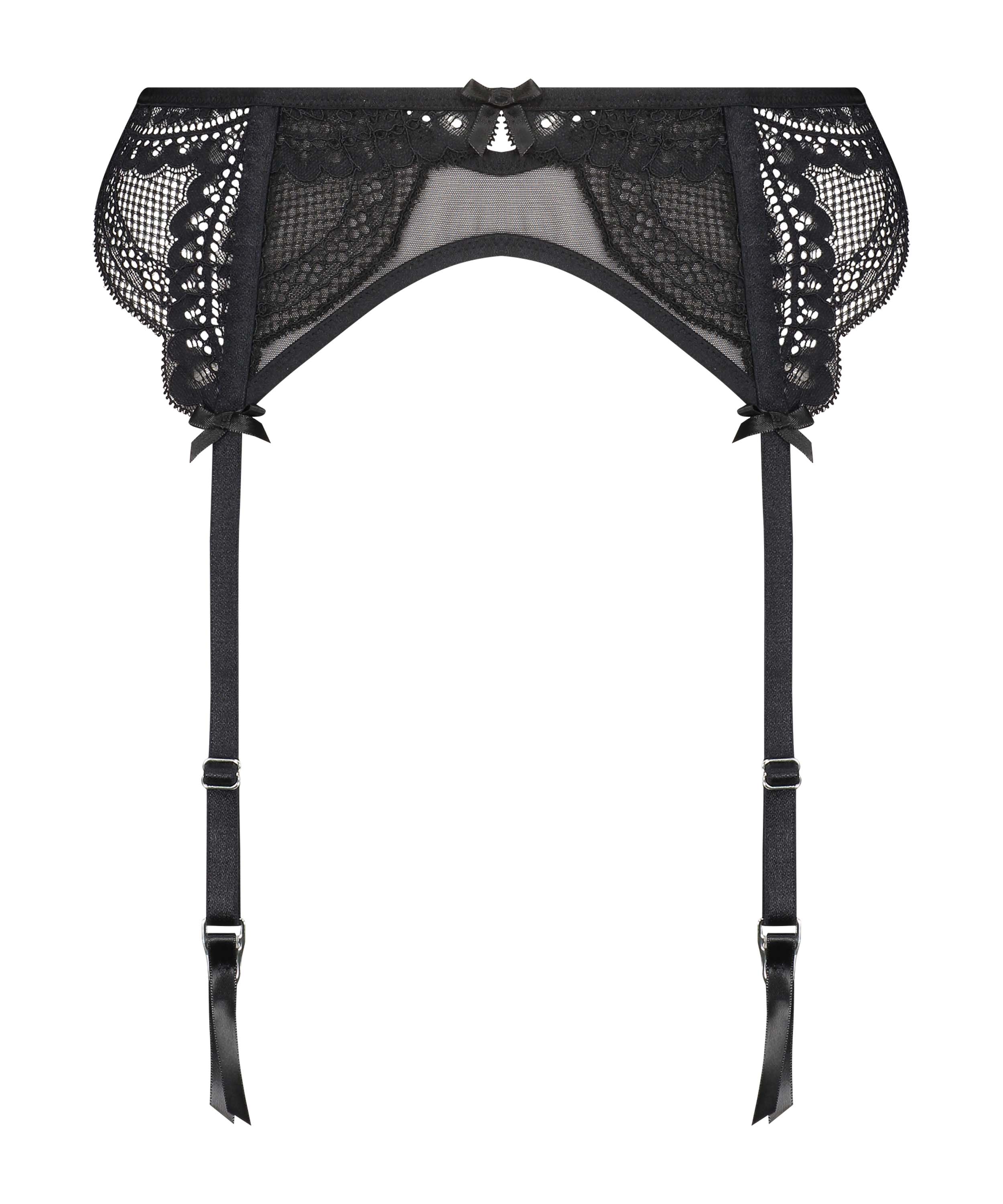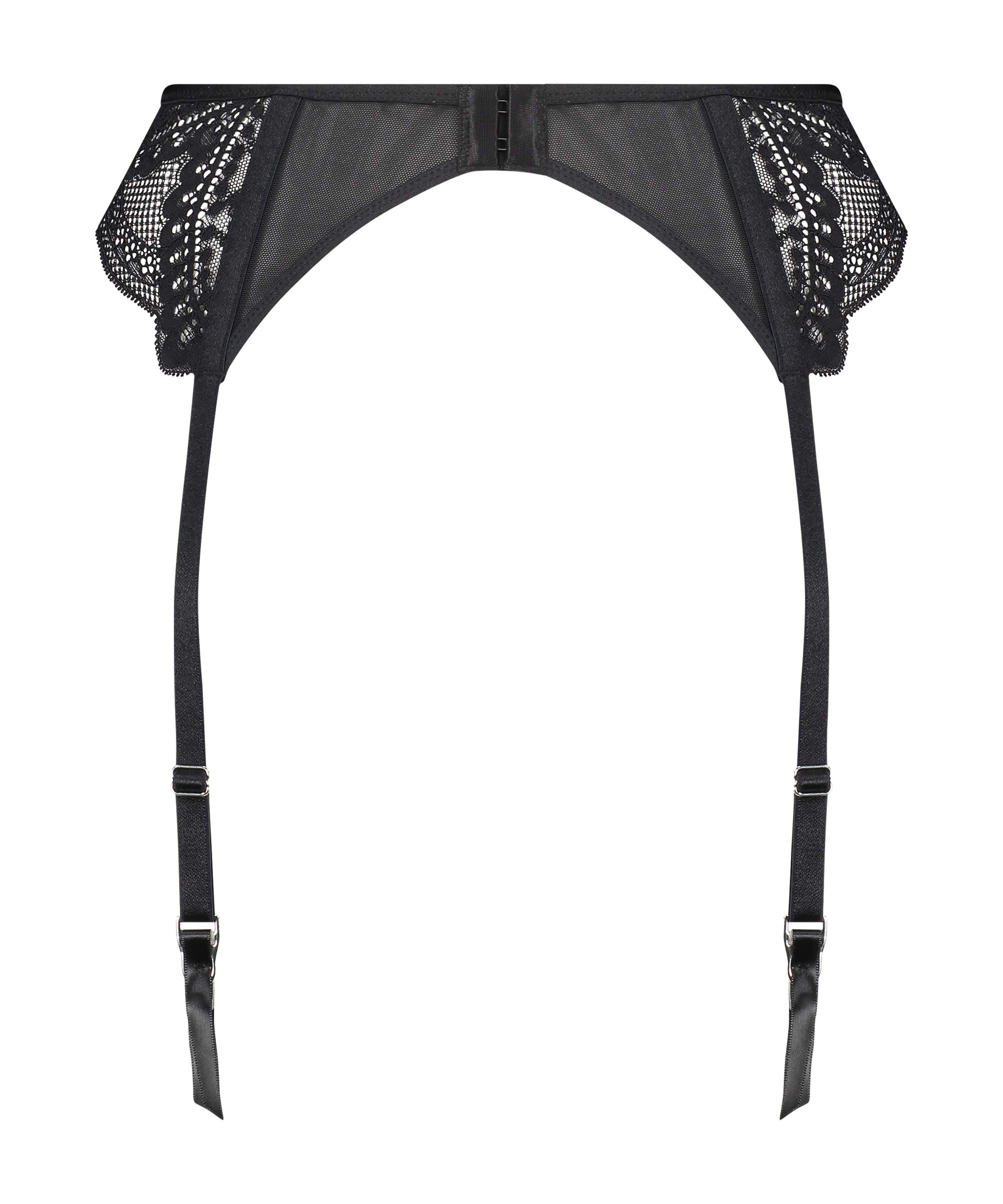 Complete your lingerie set with these suspenders. In gorgeous lace and semi-sheer mesh. Part of the Rebecca Mir Collection.