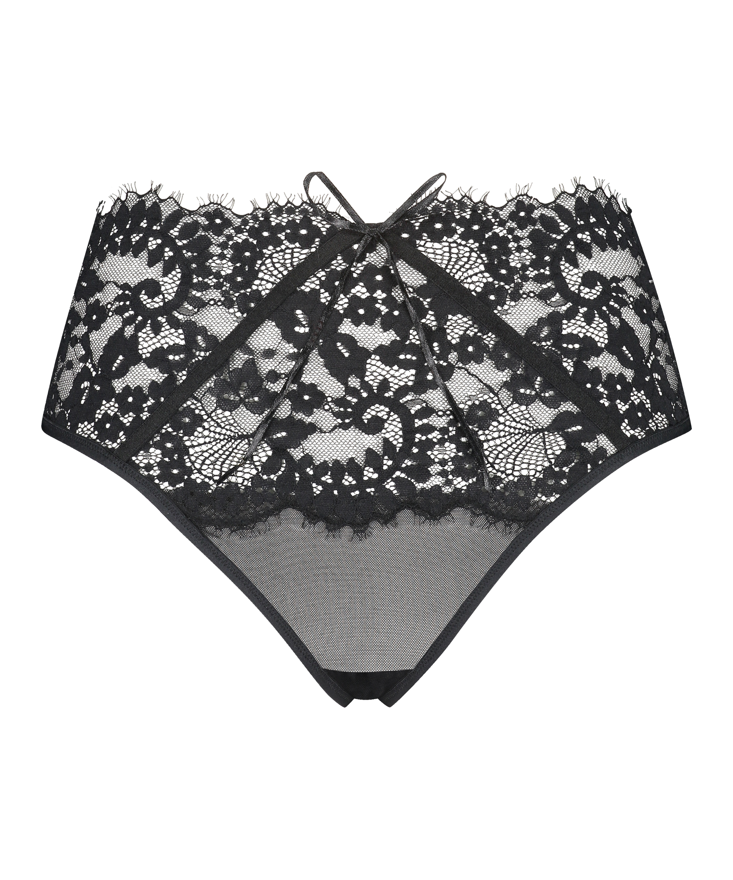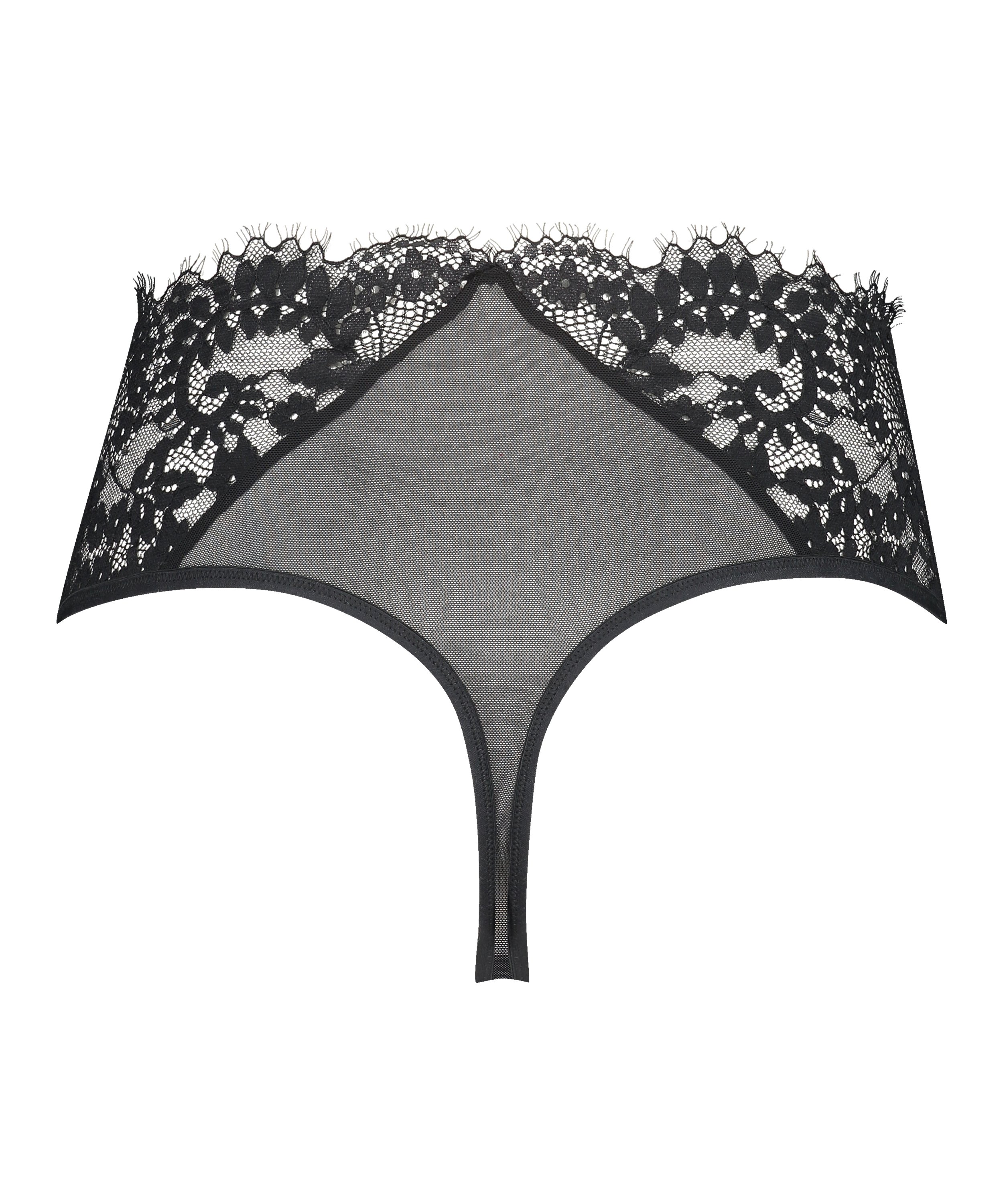 Feel confident in this beautiful thong! The thong is a bit higher, which makes it very comfortable. This thong is made of lace and mesh, of which the mesh is elastic. There is a little bow on the front. Combine this thong with a matching bralette to complete your set! Part of our Curvy Collection