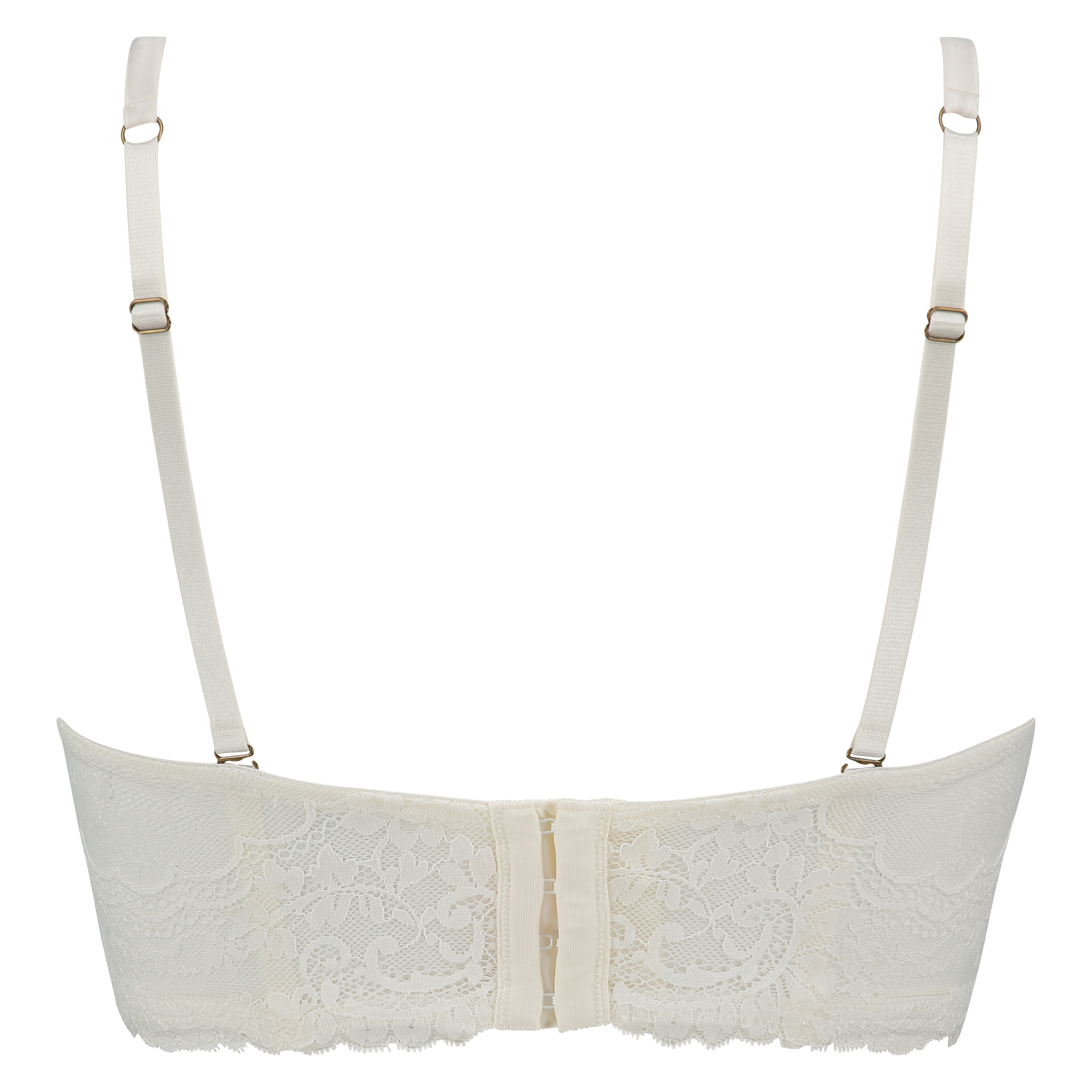 This special longline bra from the Noir collection features semi-transparent lace combined with a panel of shiny fabric on the front. The non-see-through cups are decorated with a layer lace. A pendant between the cups adds a finishing touch. This bra can be worn with or without shoulder straps.