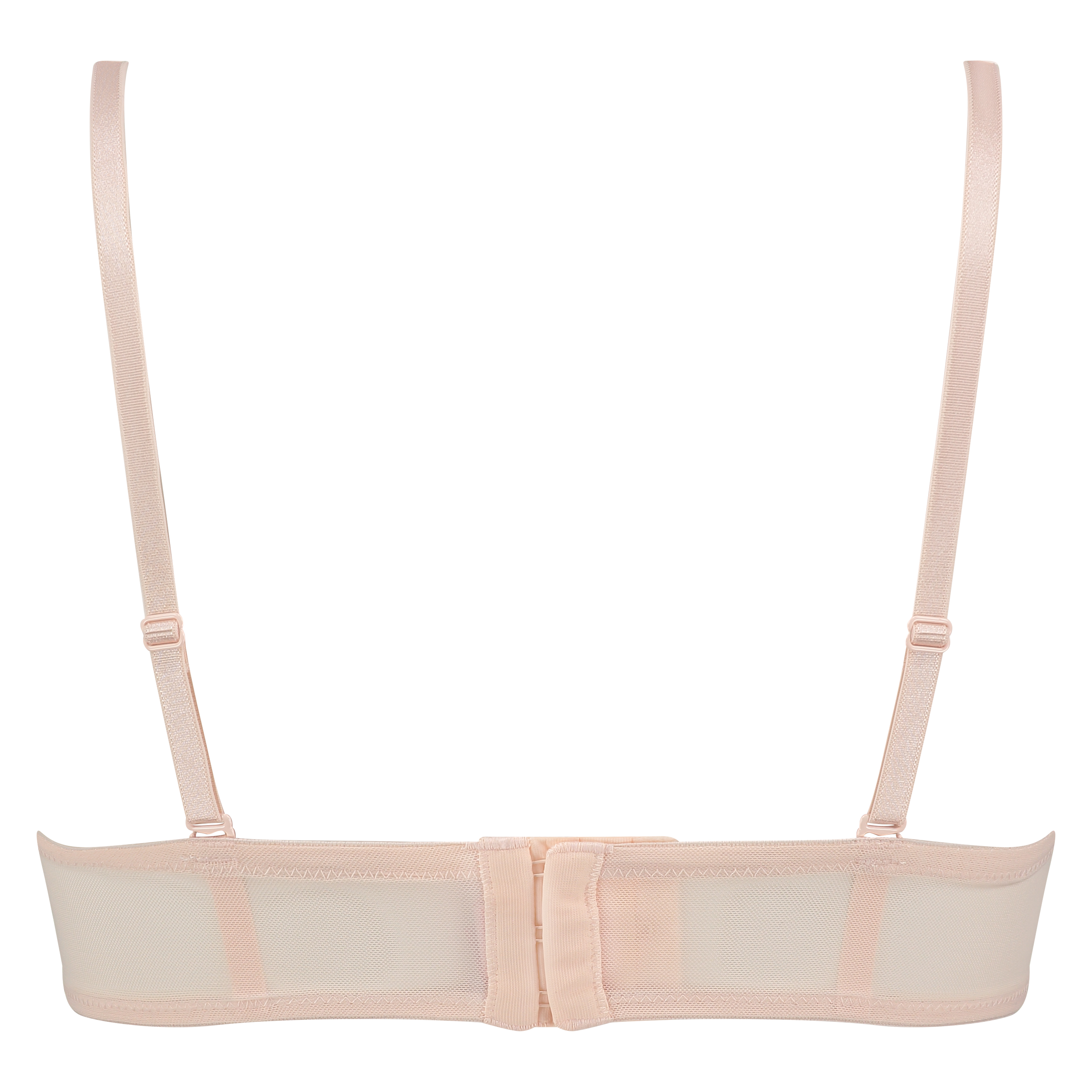 This strapless padded and underwired bra features non-see-through fabric decorated with semi-transparent lace on the front. Both cups are finished with bows. The straps of this multifunctional bra can be worn in several different ways.
