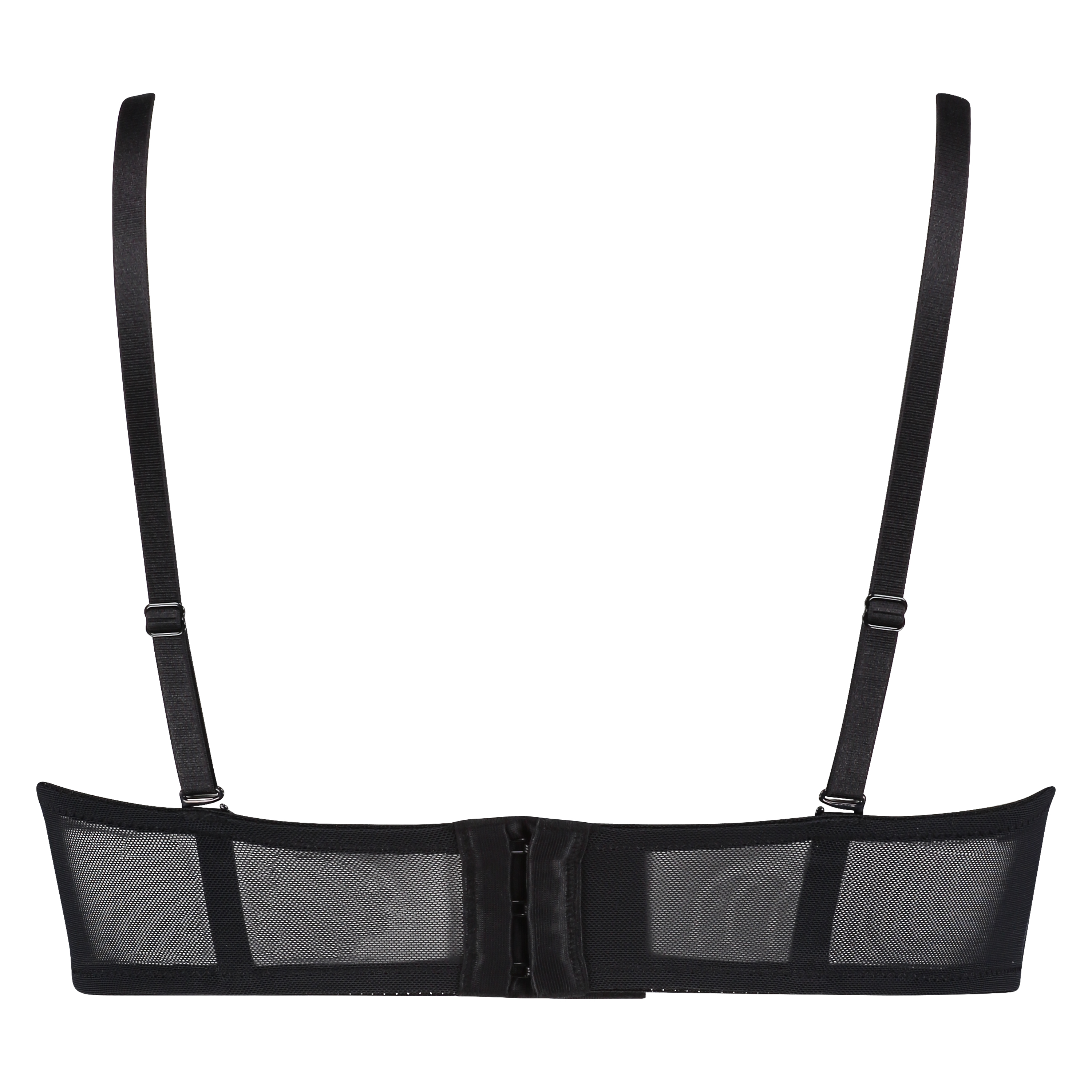 This padded and underwired bra features lace on the cups. The removable shoulder straps allow the bra to be worn as a strapless bra or as a multiway bra. A small bow between the cups adds a finishing touch.