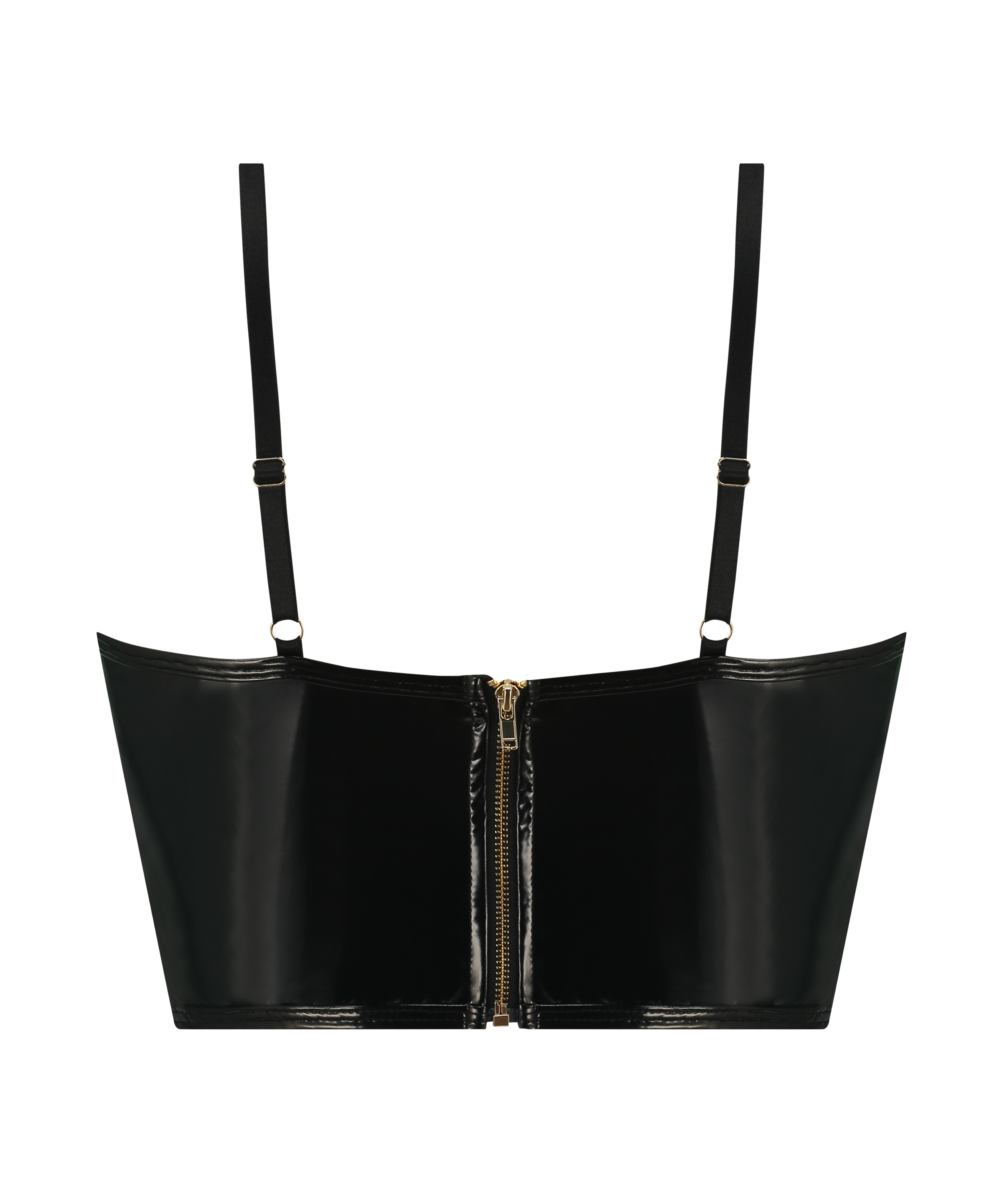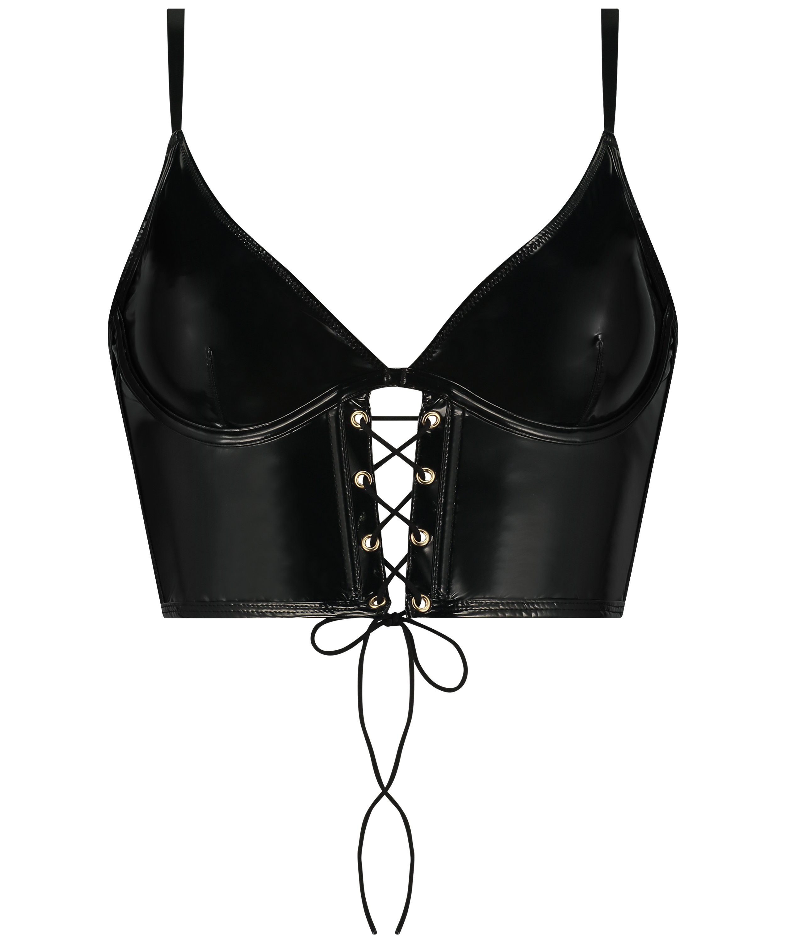 Feel seductive in this sexy top! With a fake leather look and spicy cut-out details on the front. This top has a zip closure on the back and the shoulder straps are adjustable for extra comfort. Pair with the matching pants. Part of our Private collection.