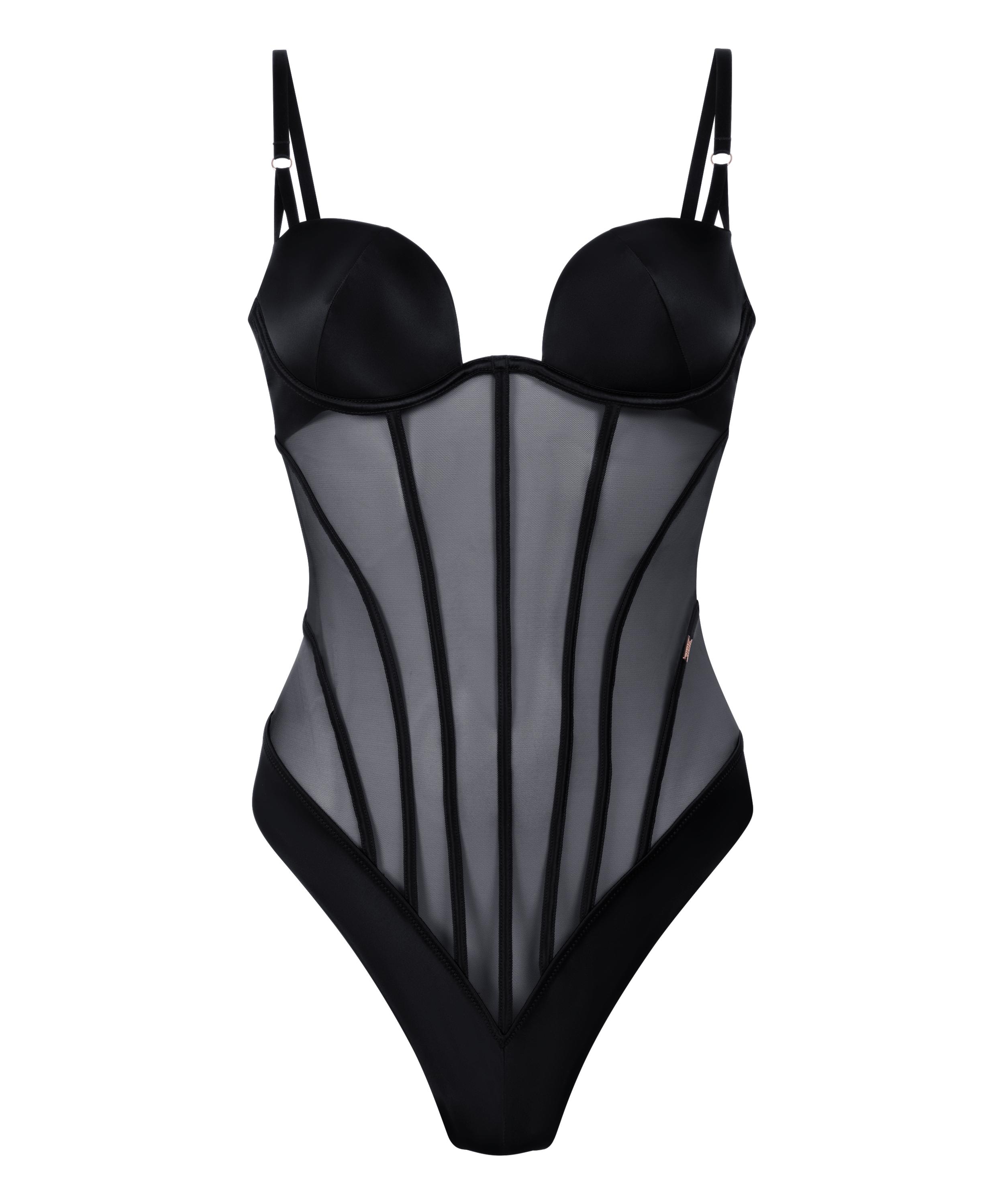 Indulge in luxurious comfort with our Paige body. The satin cups provide a smooth, glossy finish, offering a flattering, soft feel, while the mesh panels create a daring contrast that enhances your curves.