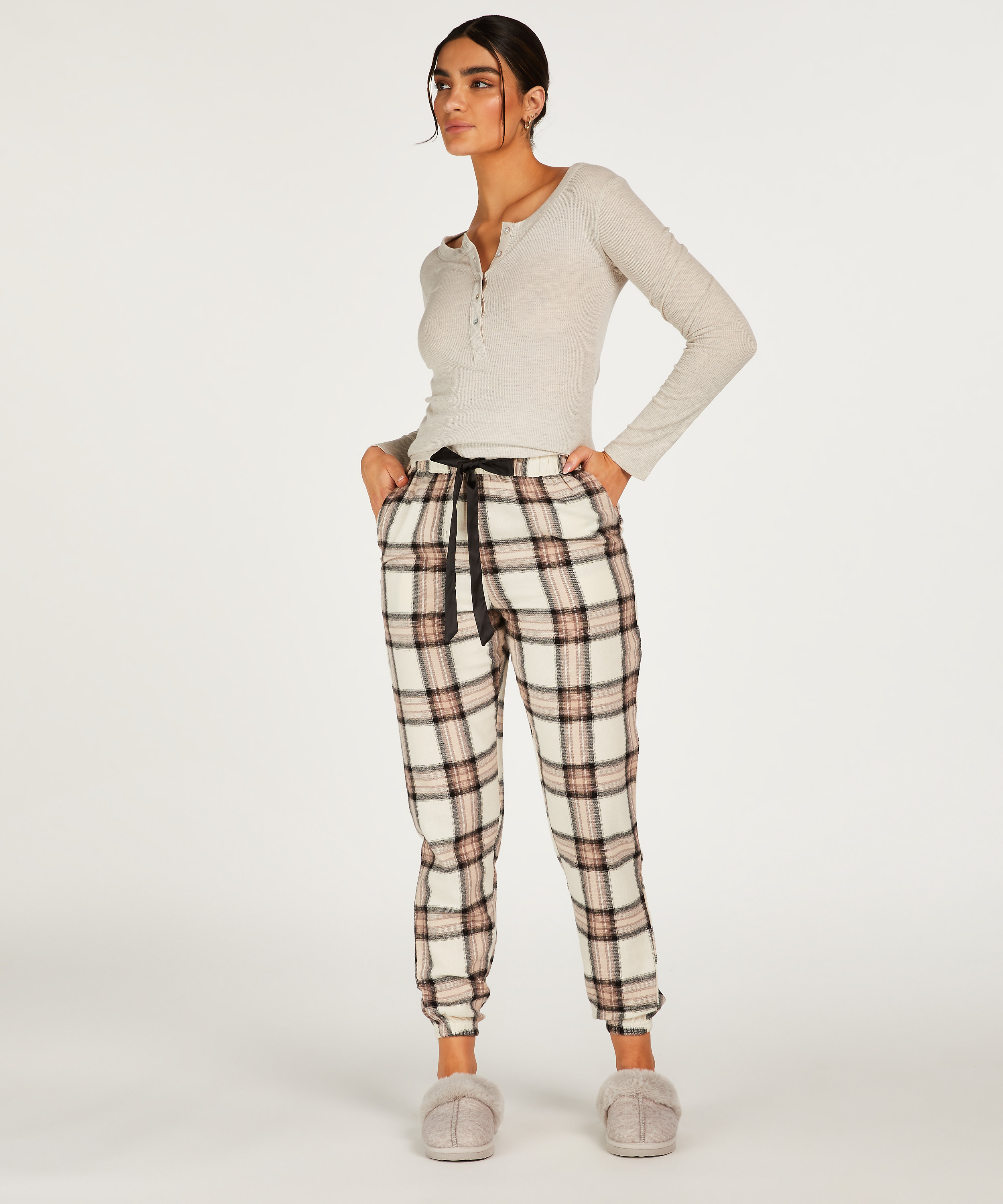 Feel nice and comfy in these pyjama pants! The pants have a lovely block pattern, with elasticated ankle cuffs. Combine with the matching top for a cute set! The trousers are 7.5 centimetres shorter than the standard fit and have a petit-fit. This makes them perfect for women shorter than 1.60m.