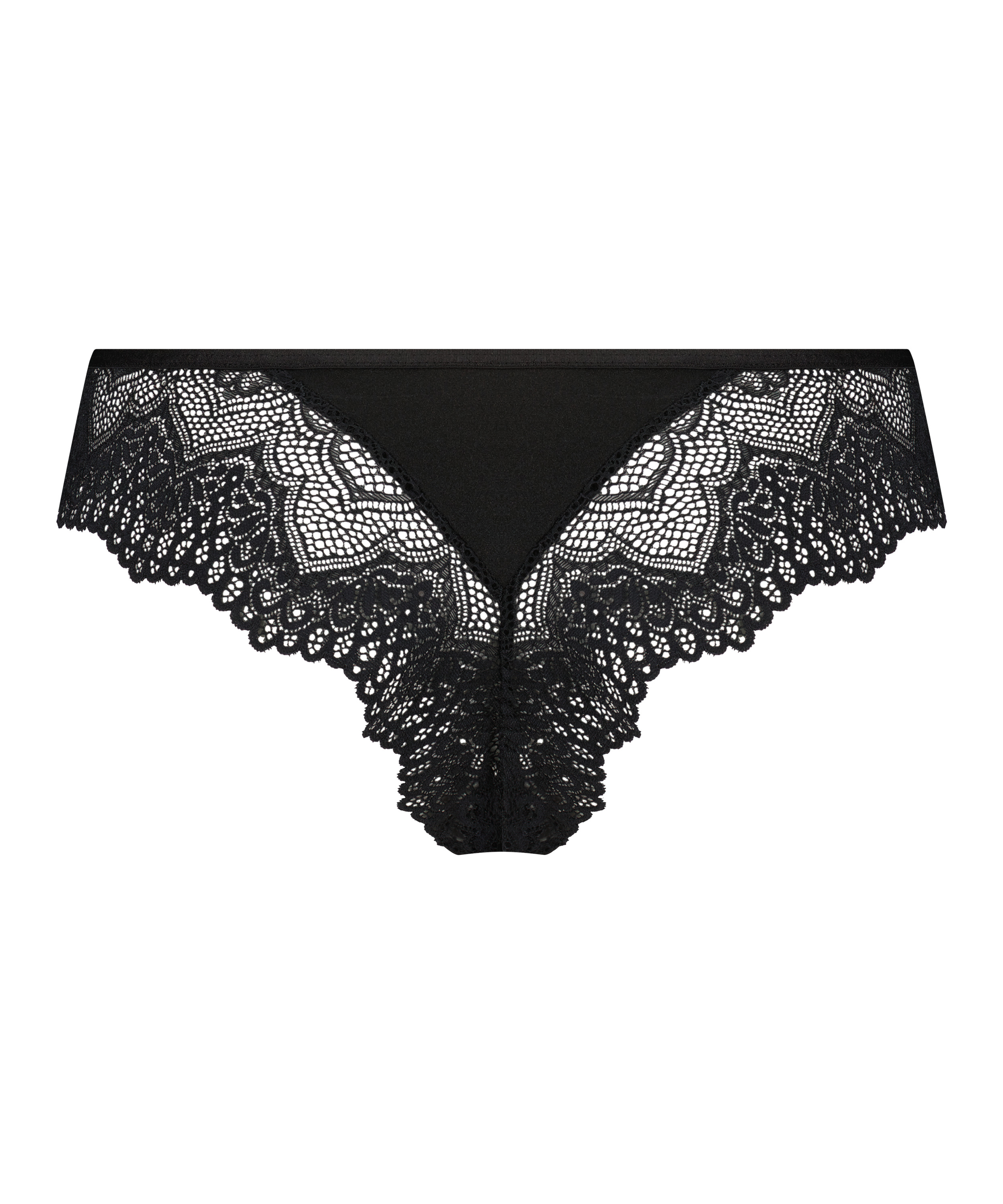 These Brazilian knickers really have that wow effect! The knickers are finished with lots of lace and include a bow at the front. Combine with matching bralette or bra to complete your set.