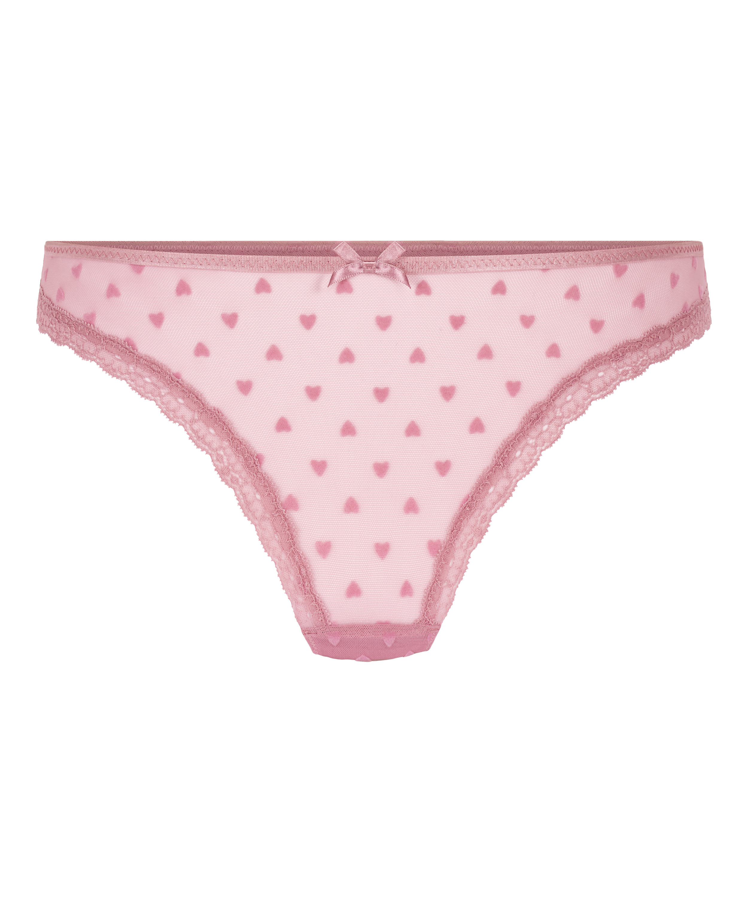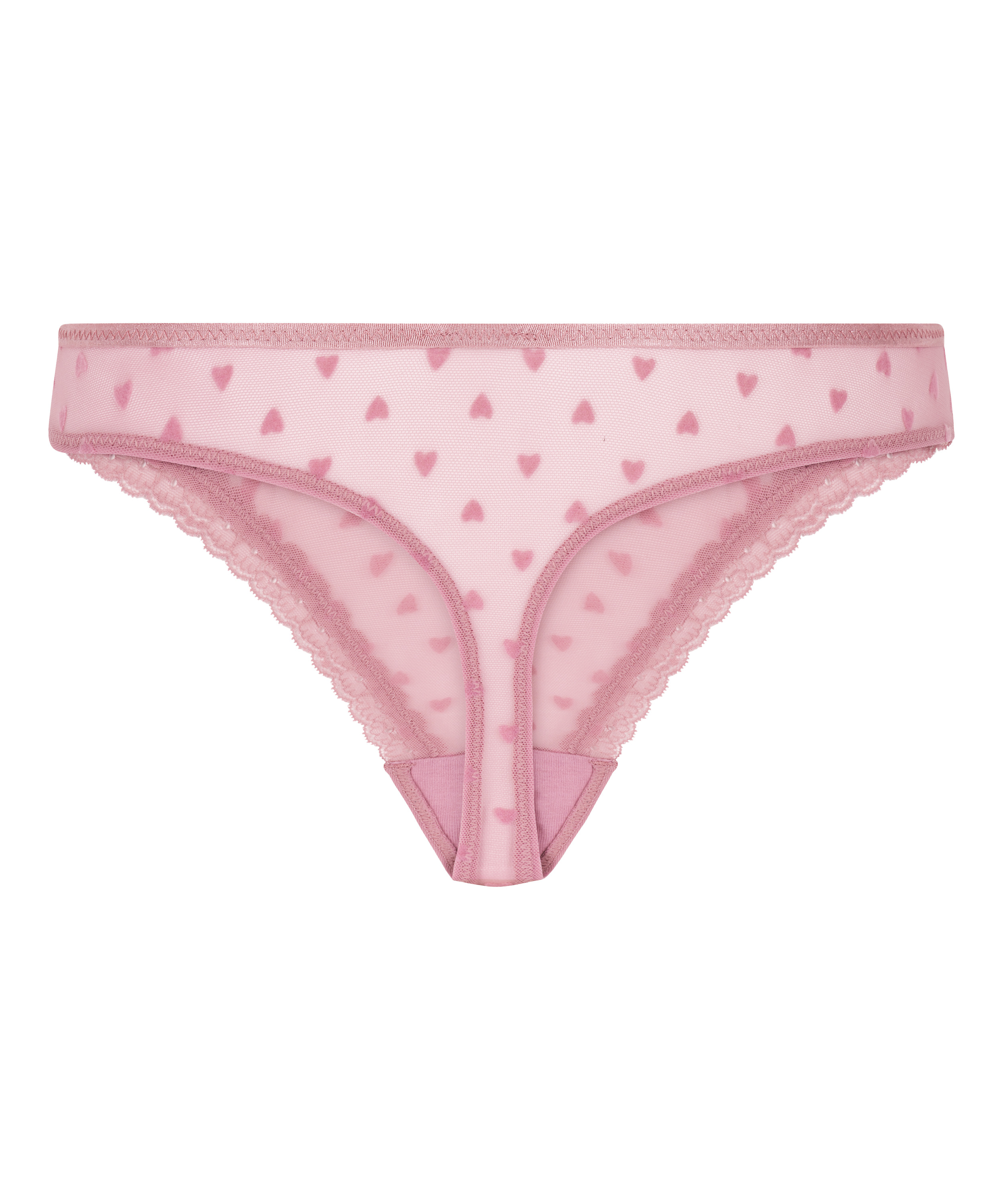 Feel comfortable in this pretty thong. The thong has a lace trim and velvet heart detailing. Pair with your favourite bra to complete the set.
