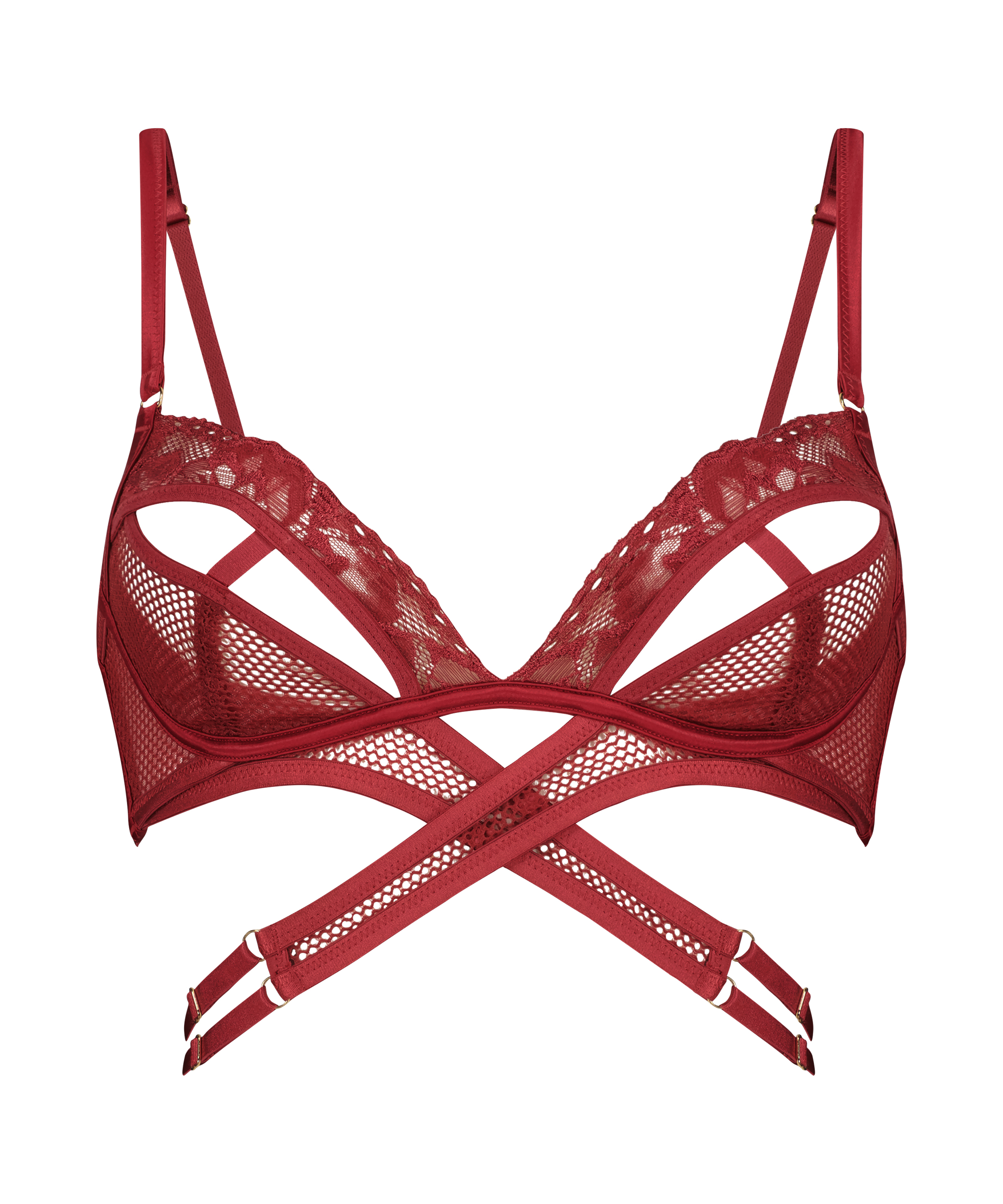 Spice things up with this super sexy bralette. It features lots of fishnet material and strappy details everywhere. There are cut-outs on the cups and on the waistband. It is a very special look. Pair with the matching knickers! Part of our Private collection.