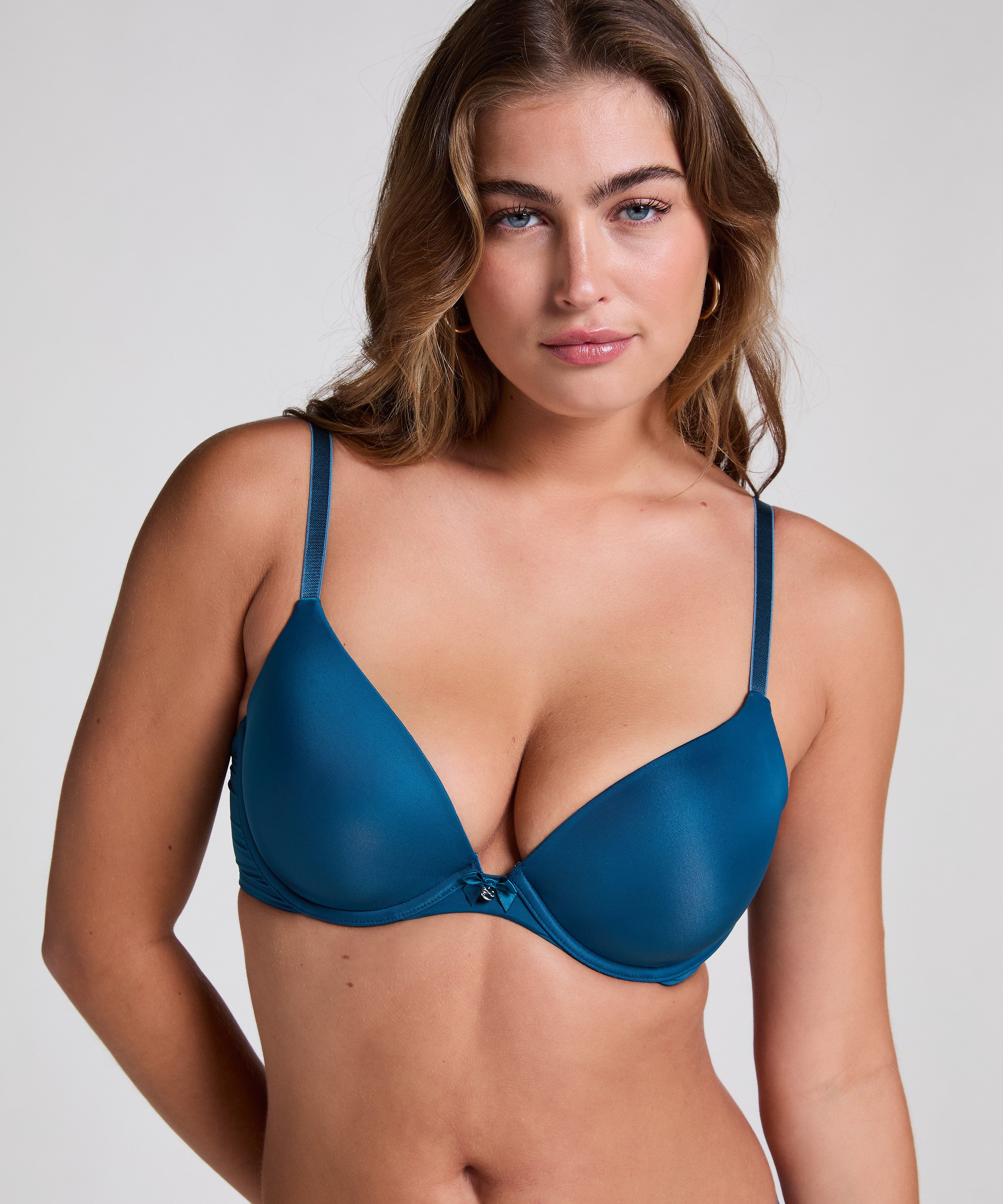 Feel comfortable in this bra! It has a very flattering V-cut design and adjustable straps to fit you perfectly. Completed with a small, elegant bow in between the cups. Mix and match this with knickers from the collection!